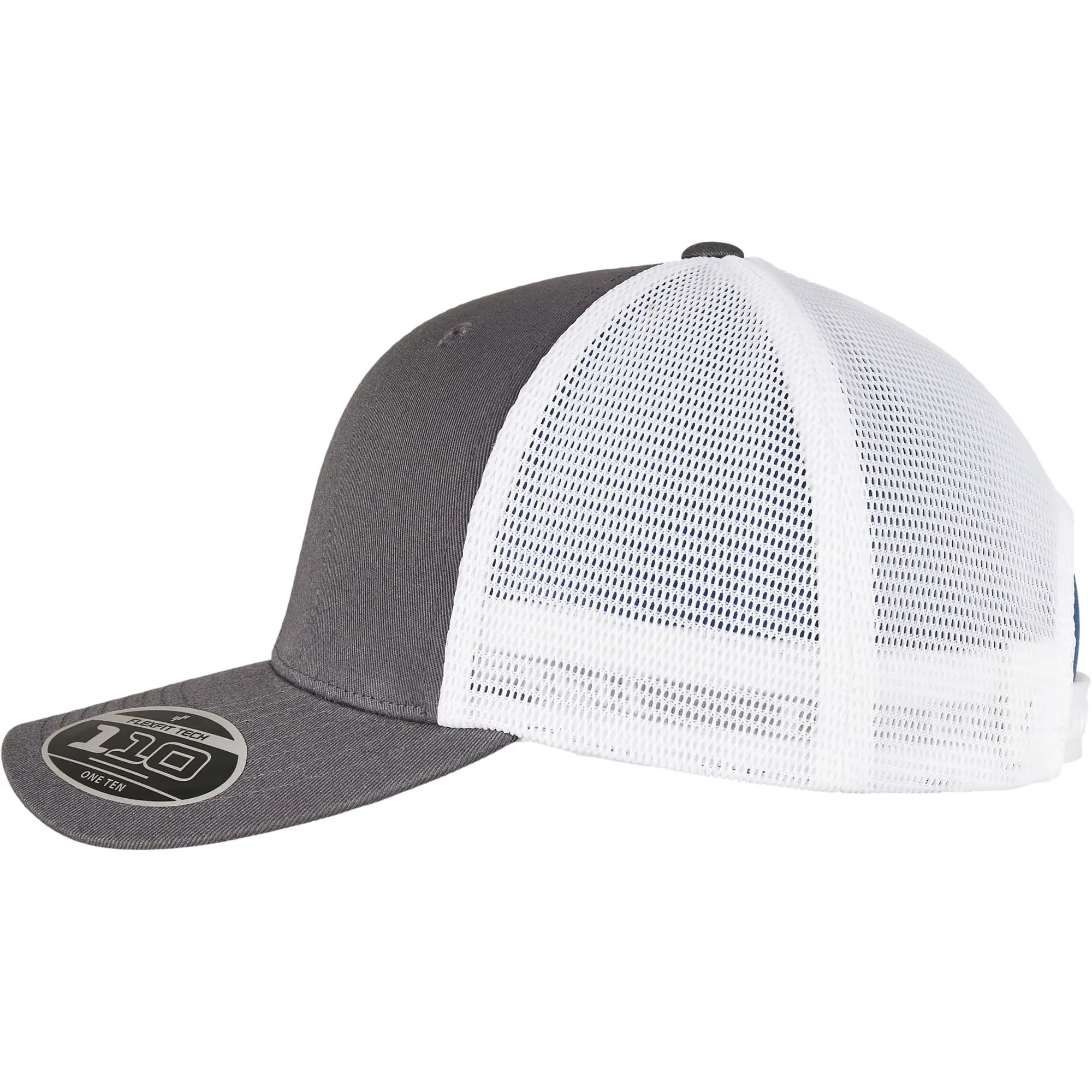 – Voorkant van katoen, achterkant transparant, wit polyester gaas– Flexfit-band– Snapback-sluiting– Voorgebogen klep met achtvoudig stikwerk– Niet wasbaar