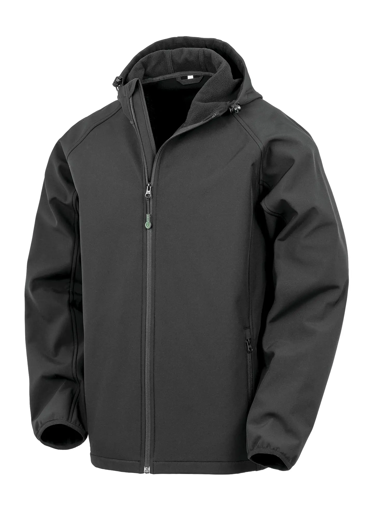 – Duurzaam, gerecycled softshell jack met capuchon.