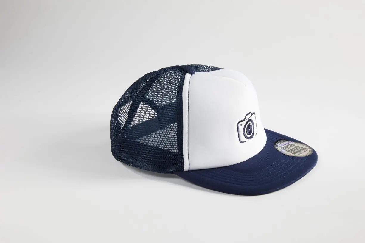 5 Panel Mesh Cap met platte klep– 6 decoratieve naden bovenop– Gewatteerde katoenen zweetband– Peel-off sticker bovenop– “Click & snap” bevestiging voor verstelbare grootte