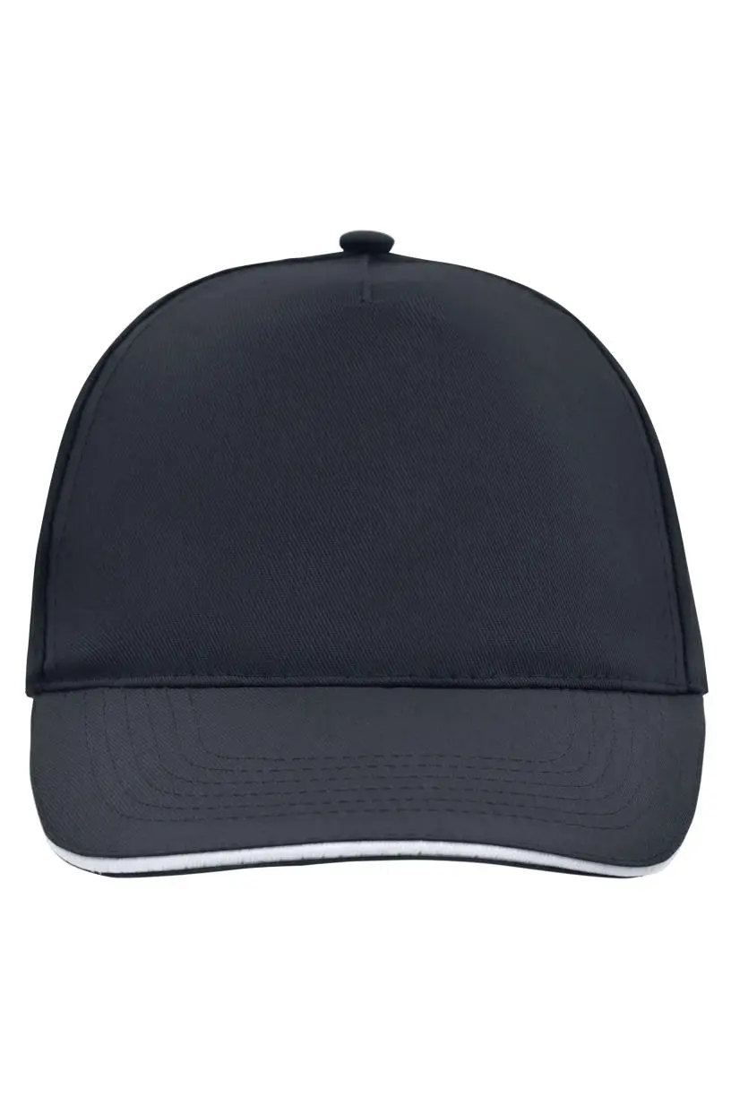 Promopet met 5 panelen met sandwich in contrasterende kleuren– 4 gestikte ventilatiegaten– 6 stiknaden op de klep– Licht verstevigde voorpanelen– Klittenbandsluiting– Katoenen zweetband