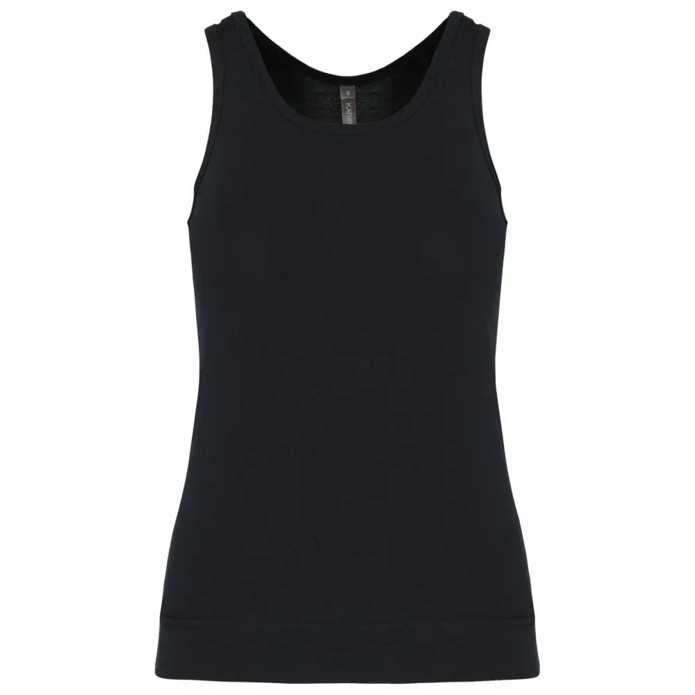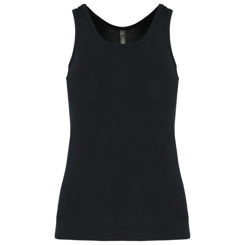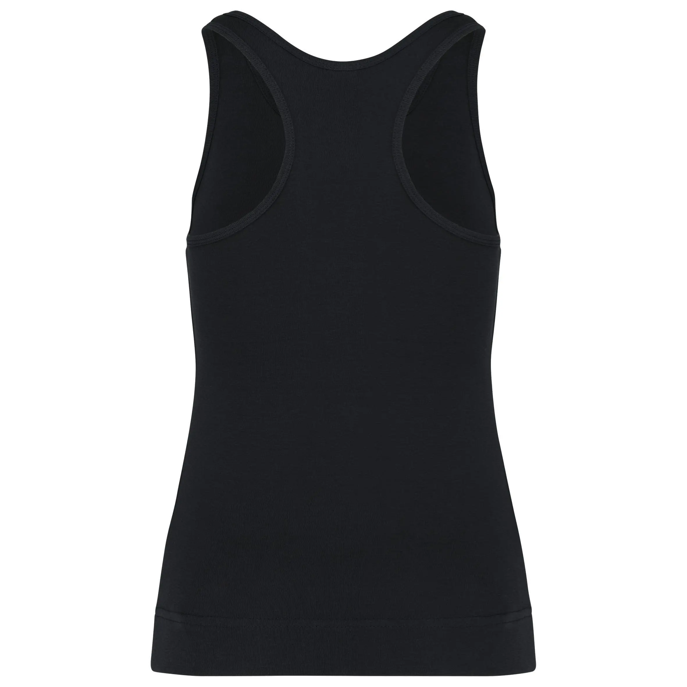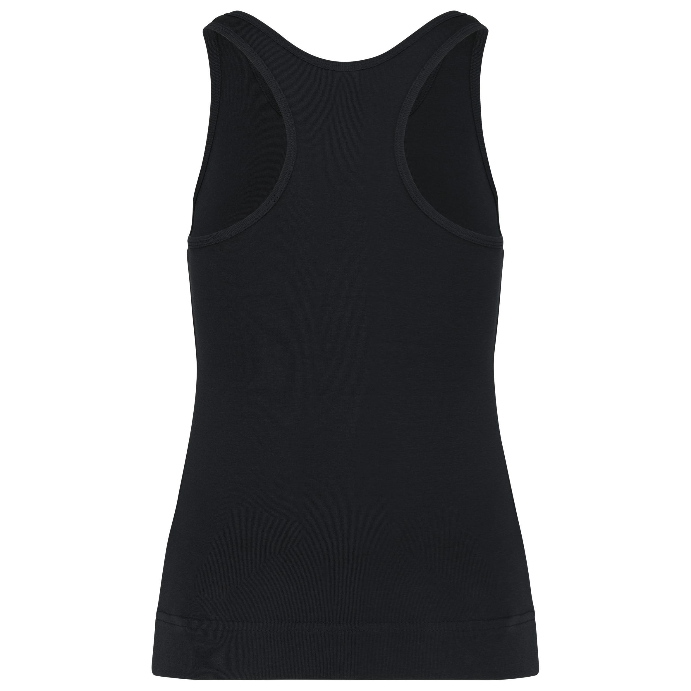 100% katoen 1×1 rib. Racerback. Afwerking met dubbele stiksels. Gecertificeerd STANDARD 100 by OEKO-TEX®N° CQ1007/7, IFTH.