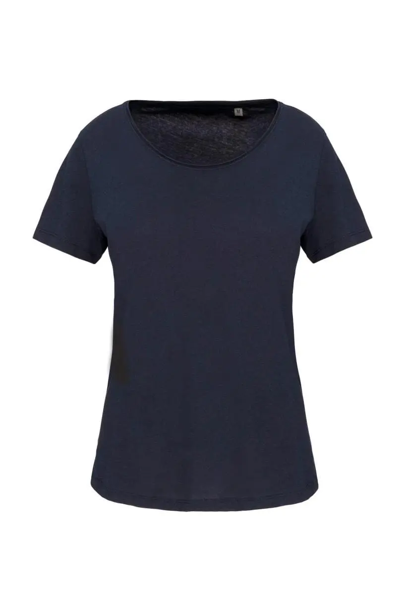 Bio dames-t-shirt kraag met onafgewerkte rand korte mouwen
