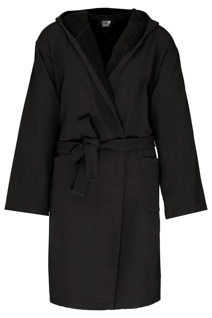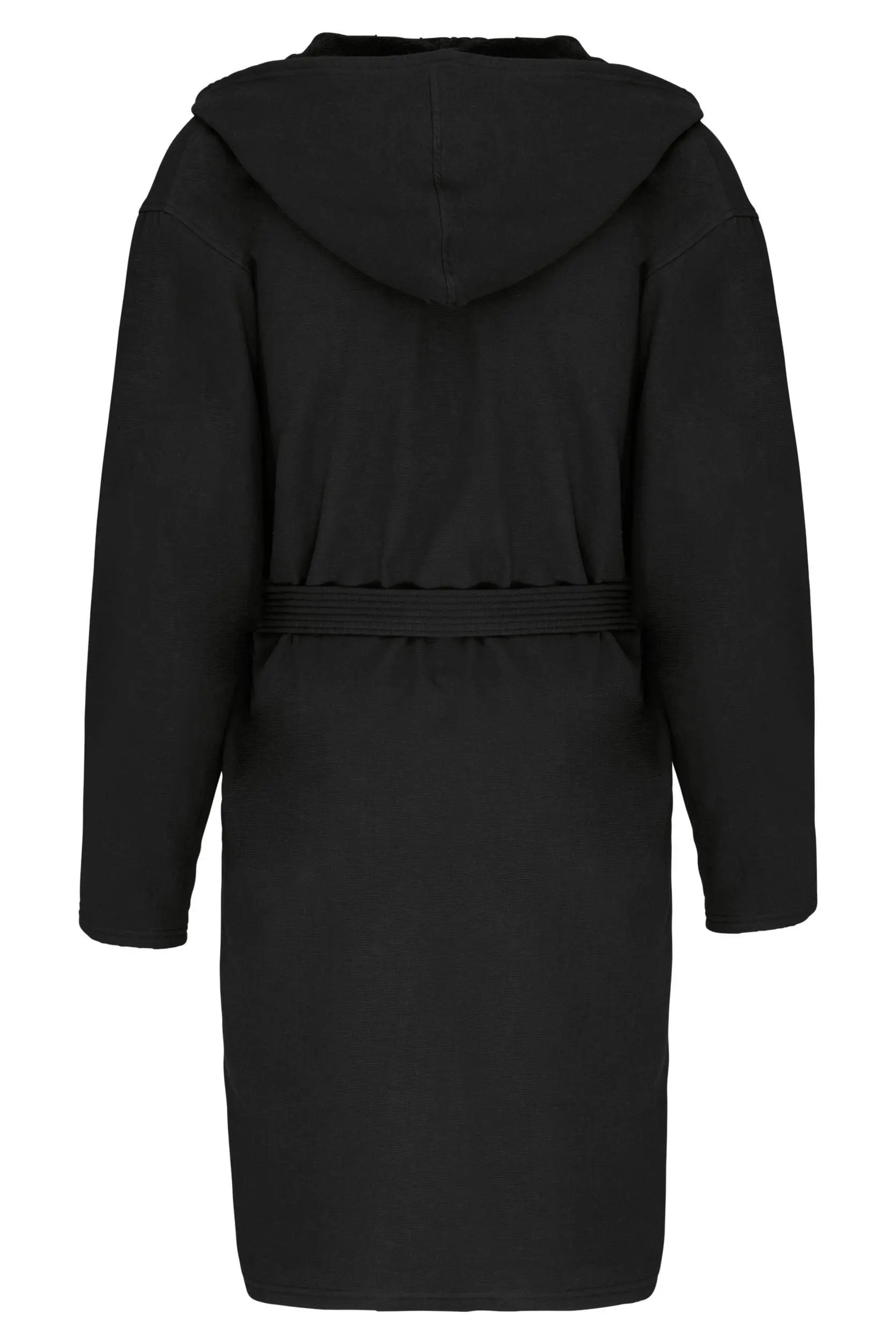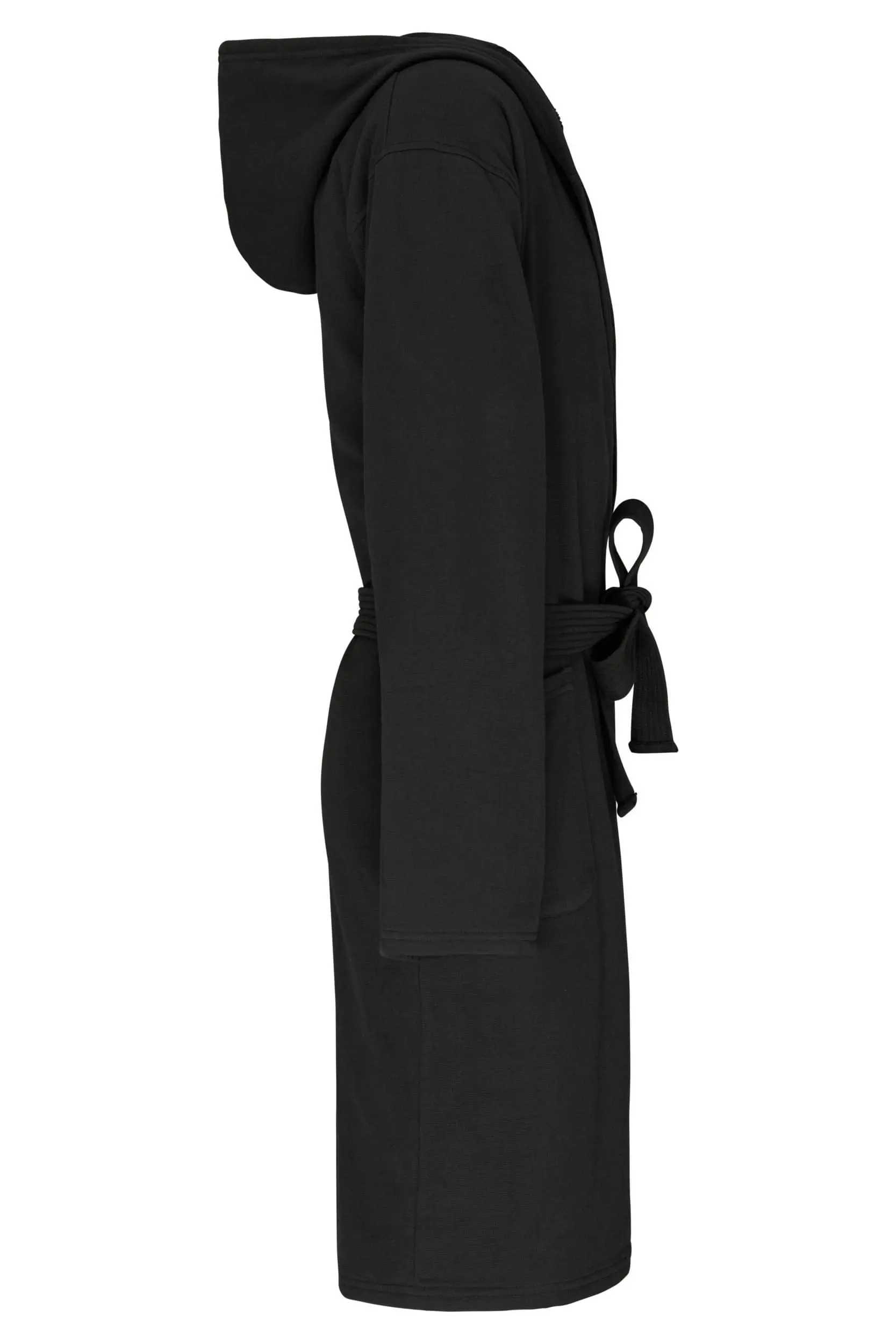 100% katoen. Alle kleuren zijn gemaakt van biologisch katoen. Terrytricot. Voelt aangenaam en zacht aan. Grote capuchon. 2 opgezette zijzakken met een verstevigend stiksel bovenaan. Tailleband met lussen. Ophanglus in de kraag. Dubbel stiksel aan de rand van de capuchon, aan de mouwuiteinden en onderaan. Buisvormig aan de onderste zoom en aan het mouwuiteinde. Gecertificeerd STANDARD 100 by OEKO-TEX® N° CQ 1007/6, IFTH.