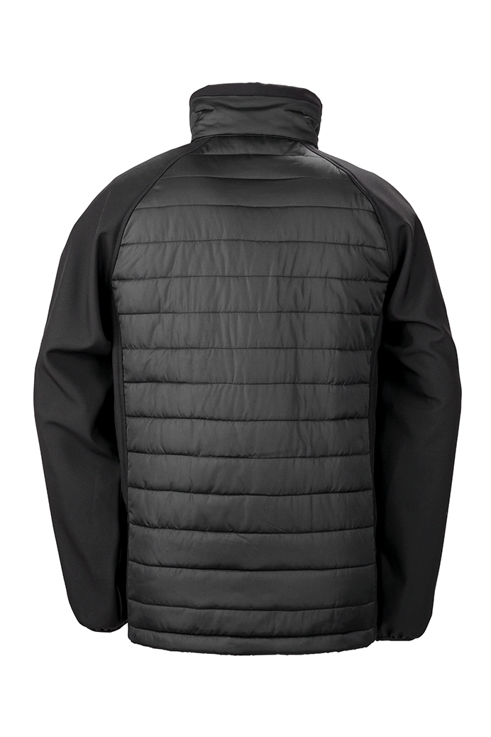 Buitenkant: 100% JIAREN gerecycled Polyester. Isolatie: 180 g/m² polyester. Voering: 100% polyester. Stof mouwen 280g/m² SoftShell 2 lagen: buitenkant: 100% polyester; binnenkant: 100% microfleece polyester. Ritssluiting met kinbescherming op de voorkant, gewatteerde opstaande kraag. Ritszakken in een contrasterende kleur, één op de borst en twee opzij, met zwarte schuivers. Gewatteerd lichaam. Manchetten met omboorde randen. Heel zacht, licht en warm. Drukkersrits vooraan op de linkerkant.