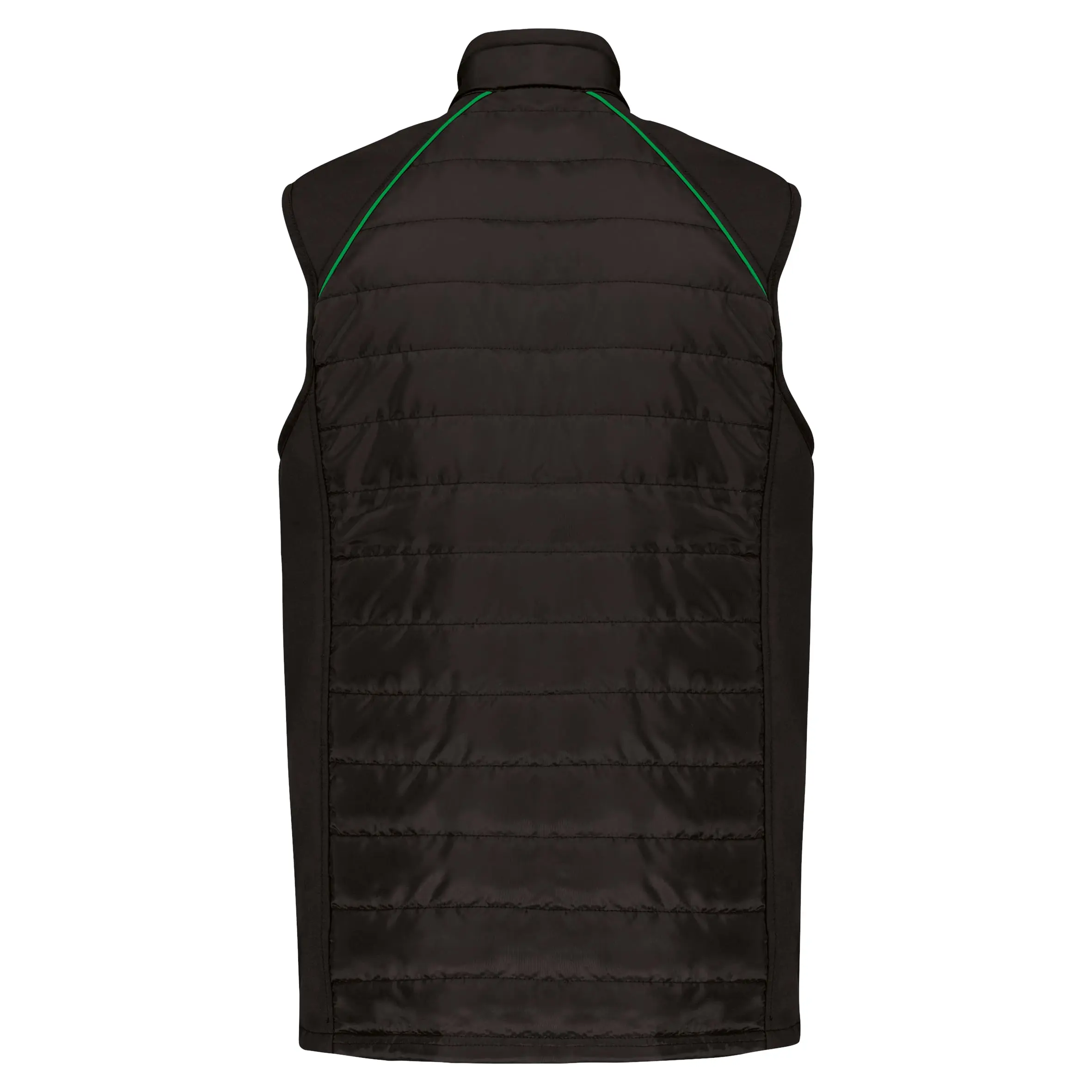 100% polyester. Softshell 2 lagen, in de 4 richtingen rekbare stof voor meer bewegingsruimte en met binnenlaag in fleece voor meer warmte aan de zijkanten en op de schouders. Voorkant en achterkant: 100% polyester 75 g taf 230T met coating. Waterafstotende stof. 2 ritszakken aan de voorkant. 1 naametiket links aan de binnenkant. Contrasterende bies aan de raglannaad van de mouwopeningen en in de kraag. Ritssluiting vooraan en contrasterende zakken. Blinde drukkersrits onderaan. Ideaal voor dagelijks gebruik.