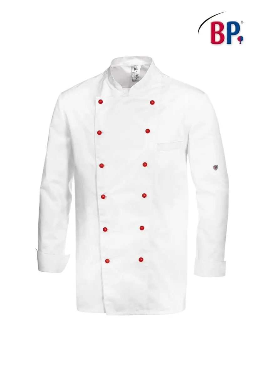 1/1 mouw met manchetten, opstaande kraag, dubbele rij knoopsgaten voor 6 paar bolknopen (apart bestellen), ventilatieopeningen, 1 borstzak, 1 mouwzak. Let op: u dient zelf de bolknopen apart bij te bestellen. Het artikelnummer hiervan is 1031-003.