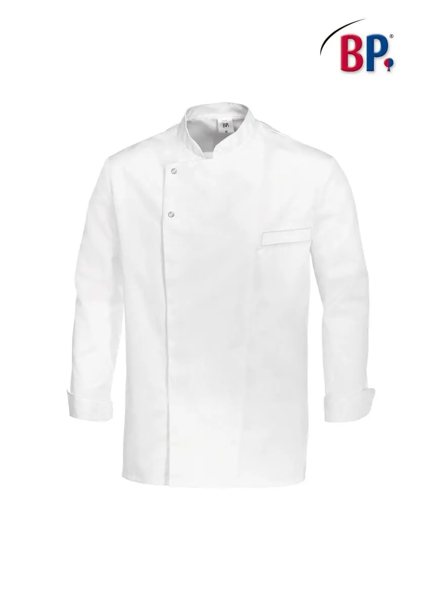 Lange mouw met manchetten, opstaande kraag, blinde drukknopenlijst, met 2 zichtbare knopen, ventilatieopeningen, 1 paspelzak op borsthoogte
