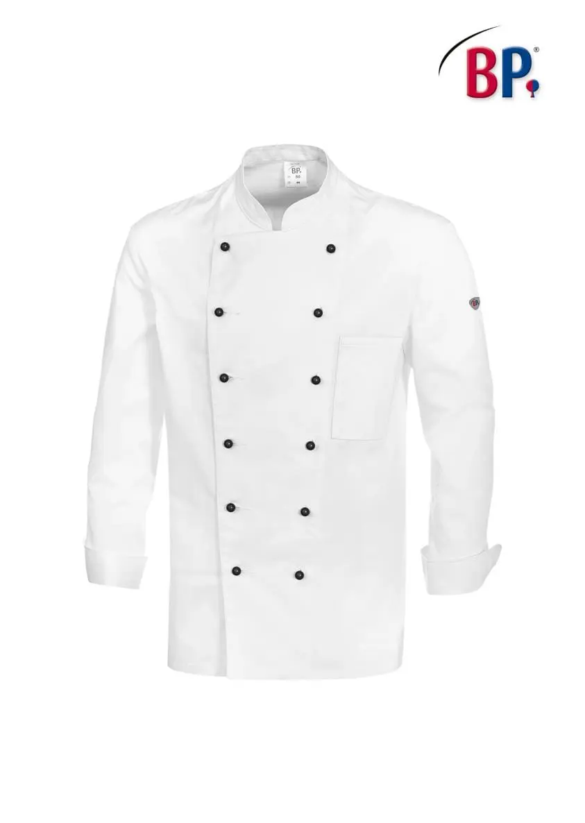 1/1 mouw met manchetten, opstaande kraag, dubbele rij knoopsgaten voor 6 paar bolknopen (apart bestellen), 1 borstzak. Let op: u dient zelf de bolknopen apart bij te bestellen. Het artikelnummer hiervan is 1031-003.