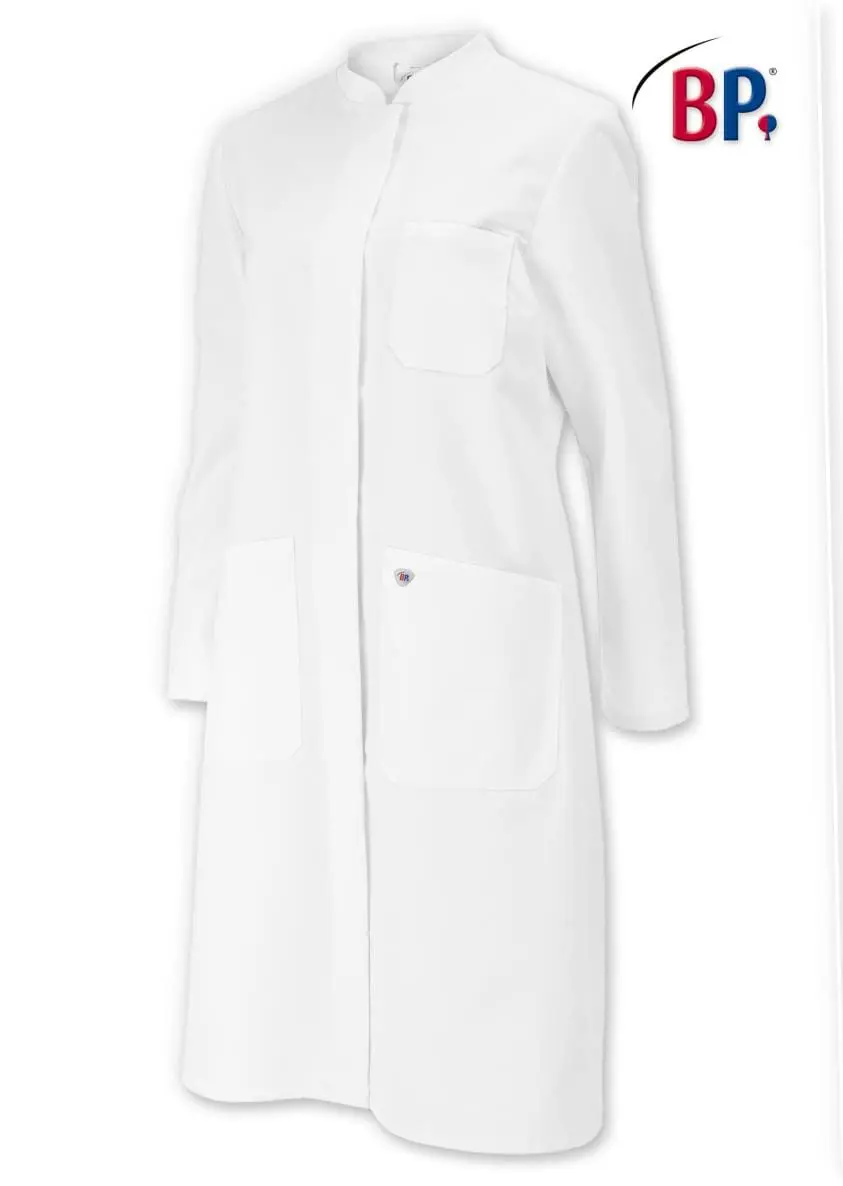 Lange mouw, opstaande kraag, blinde drukknopenlijst, 1 borstzak, 2 zijzakken, split in het rugpand, riem in het rugpand