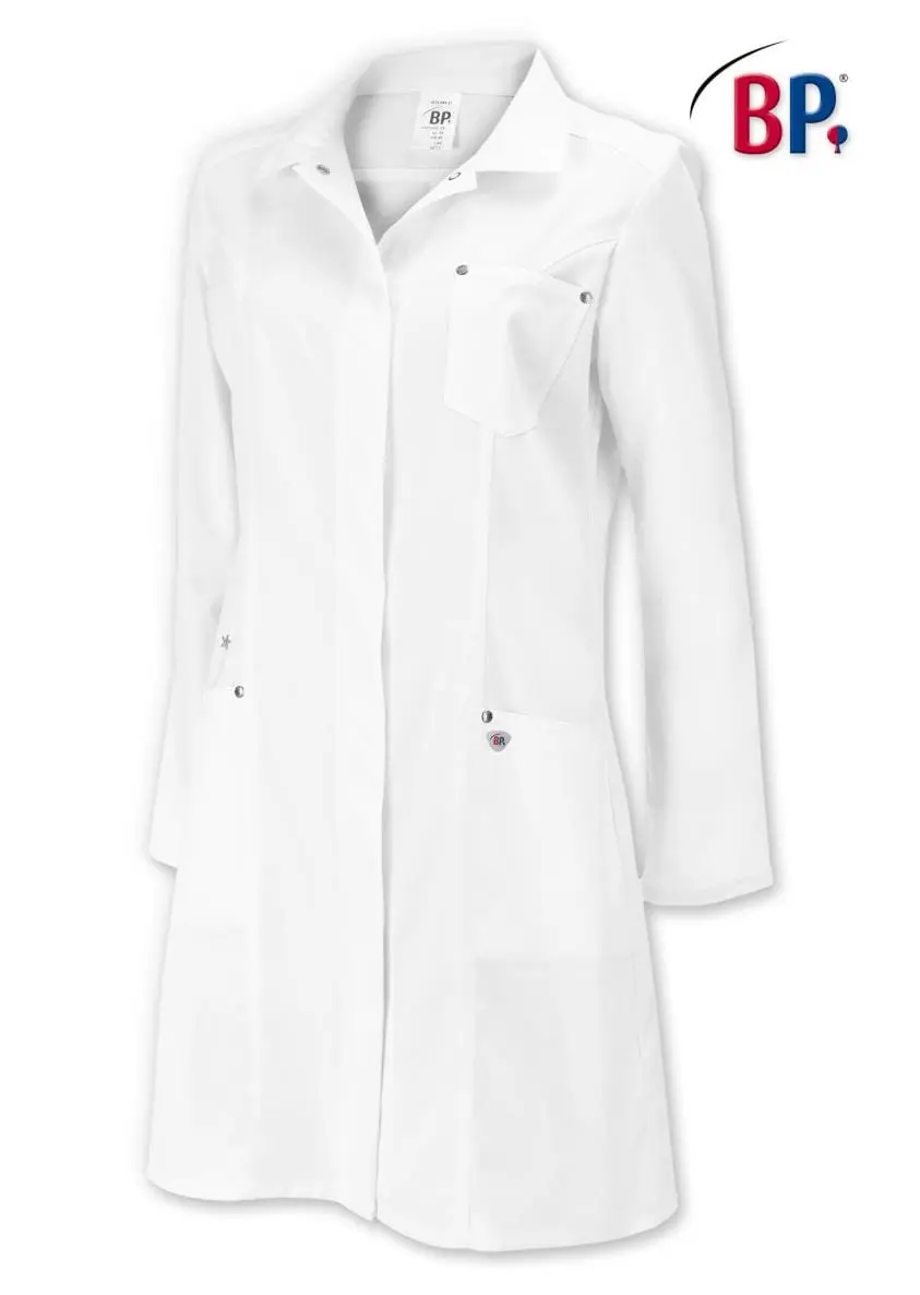 Lange mouw, liggend boord, blinde drukknopenlijst, 1 borstzak, 2 zijzakken, pas in voor- en rugpand, sierstiksel in zilver-metallic