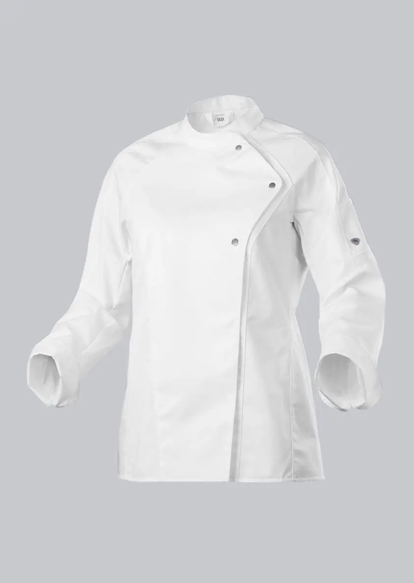 – Lange mouwen met manchetten, opstaande kraag, blinde drukknopenlijst met 3 zichtbare drukknopen, ventilatie-inzetten van BP® mesh, ergonomisch gevormde mouwen, waarvan éen met 2 opgezette pennenzakken, ingezette okselstukken voor meer bewegingsvrijheid, vormgevende deelnaden