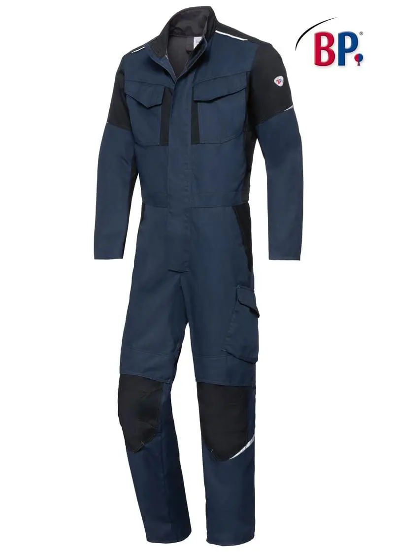 Opstaande kraag, blinde ritssluiting en drukknopenlijst, elastische tailleband aan achterkant, 2 borstzakken, 2 zijzakken, 1 achterzak met klepsluiting, 1 ruime beenzak, 1 duimstokzak, ingezette okselstukken voor meer bewegingsvrijheid, ergonomische snit, reflecterende elementen, kniezakken voor kniekussens 1839 (moeten apart besteld worden)