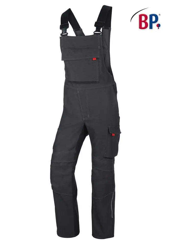Extra brede elastische schouderbanden voor meer draagcomfort met kunststof gespen, ergonomische snit, grote dubbele borstzak met klepsluiting, waarvan 1 met blinde ritssluiting, 2 zijzakken, 1 ruime beenzak met smartphonevak aan de binnenkant, beenzak met klepsluiting, hoog ruggedeelte, stretch inzetstuk aan de zijkant voor comfortabele bescherming, 1 duimstokzak met opgezette pennenvakken en klepsluiting, 1 achterzak met klepsluiting, ergonomisch gevormde broekspijpen, reflecterende biezen zijwaarts en achter aan de onderkant van de broekspijp, kniezakken voor kniekussens 1839 000 53 (moeten apart besteld worden)