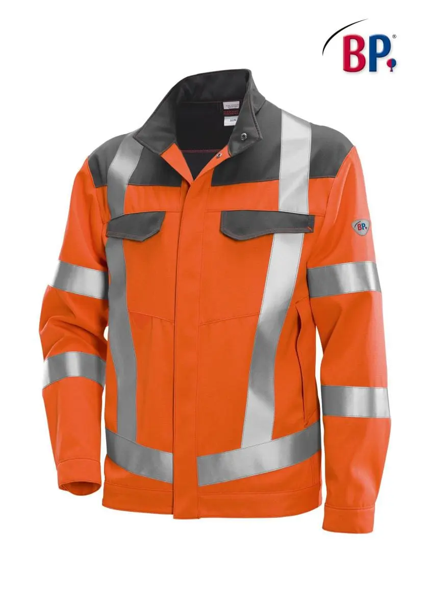 Opstaande kraag, blinde drukknopenlijst, 2 borstzakken met klep, 2 zijzakken met overslag, 1 binnenzak, 1 GSM-vak met klep aan de binnenkant, afsluitbare manchetten, 2 reflecterende strepen op de mouwen, 1 doorlopende reflecterende streep boven de tailleband, 2 doorlopende verticale reflecterende strepen op voor- en rugpand