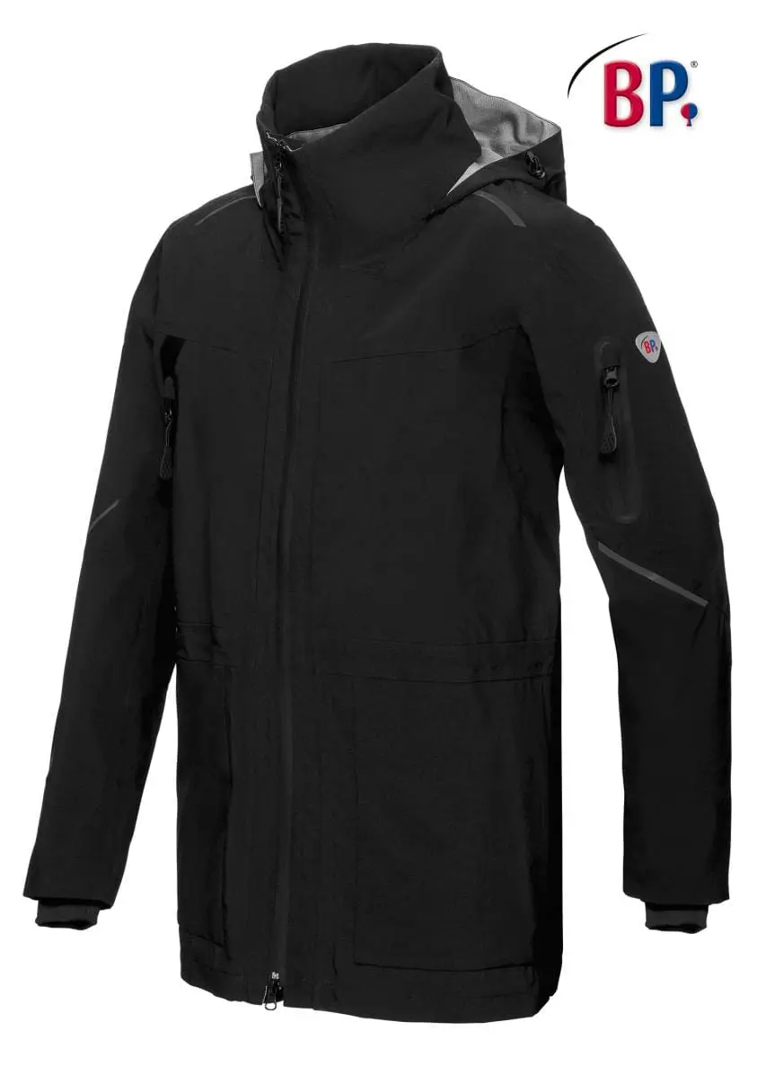 Opstaande kraag, capuchon in hoogte en breedte verstelbaar (oprolbaar in de kraag), ritssluiting aan de voorkant, gelaste naden, 2 zijzakken en 1 binnenzak met ritssluiting, 1 mouwzak met ritssluiting, 1 borstzak met ritssluiting, ergonomisch gevormde mouwen, manchetten met windbescherming, ingezette okselstukken voor meer bewegingsvrijheid