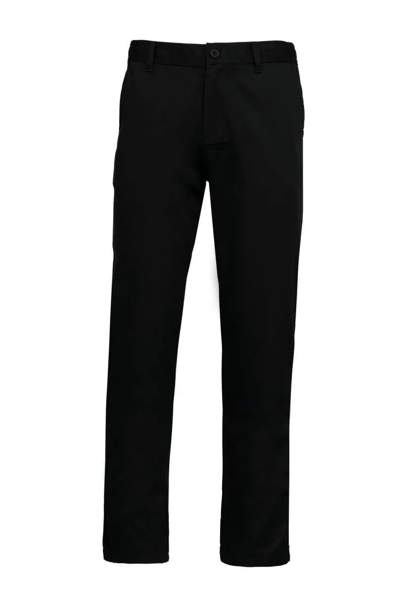 65% polyester / 35% katoen. Wasbaar op 60 °C. 2 Italiaanse zijzakken waarvan 1 muntzak. 2 omzoomde achterzakken met versterkte naden. Gulp met rits- en knoopsluiting. Elastische tailleband voor meer comfort. Met lussen. Ophanglus aan de binnenkant op de taille achteraan. Ideaal voor dagelijks gebruik. Gecertificeerd STANDARD 100 by OEKO-TEX®N° CQ 1007/8, IFTH.