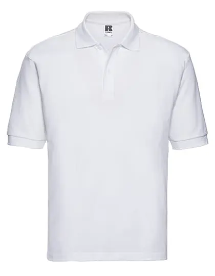 Polo. 65% polyester- 35% ringgesponnen katoen- pique. Gewicht: wit 210 g/m², kleur 215 g/m². Verstevigingsband in nek.