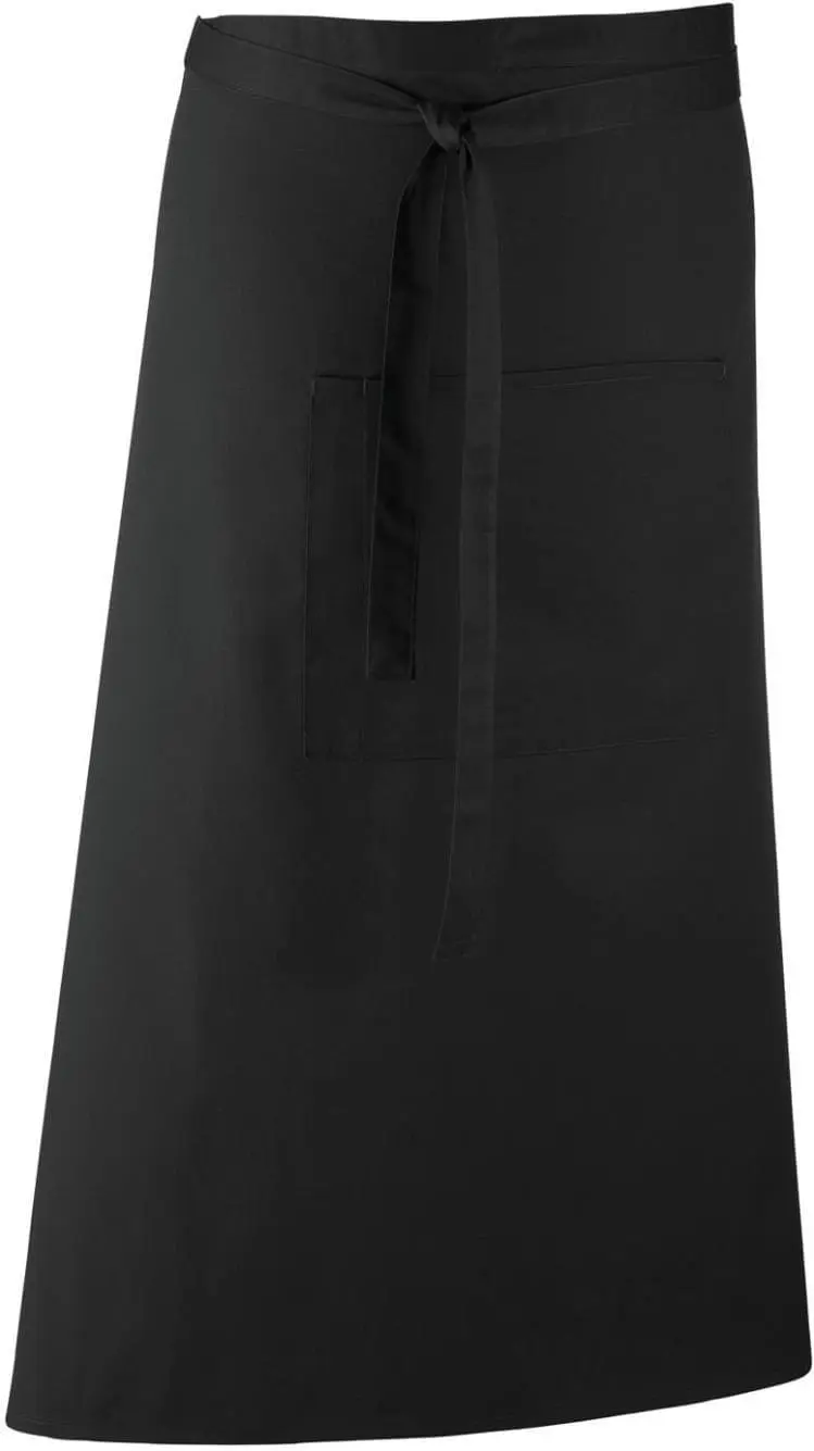 65% polyester / 35% katoen twill. Schort met 1 voorzak met penhouder. Linten in hetzelfde materiaal, 90cm lang. Afmetingen: 80cm lang en 90cm breed. Industrieel reinigen tot 85°C. Huiselijk reinigen tot 60°C.