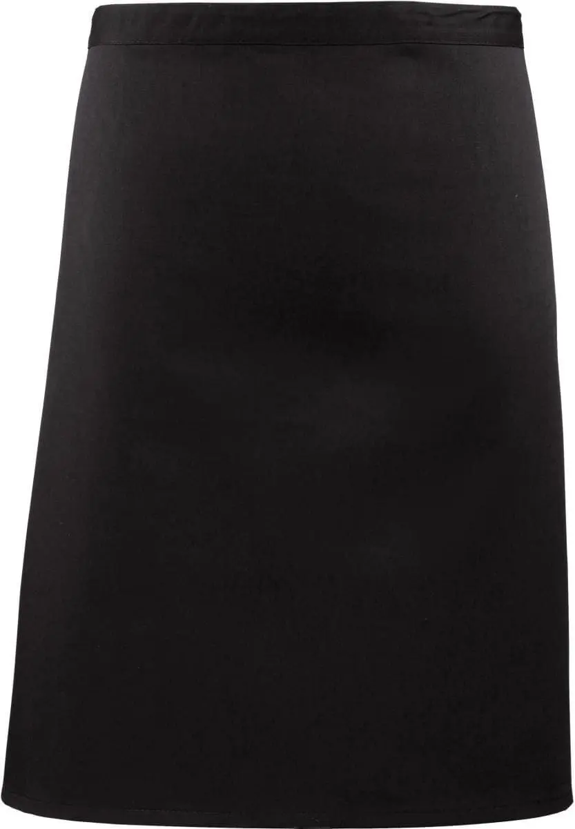 65% polyester / 35% katoen twill. Halflang schort. Linten in hetzelfde materiaal, 90cm lang. Afmetingen: 50cm lang en 70cm breed. Industrieel reinigen tot 85°C. Huiselijk reinigen tot 60°C.