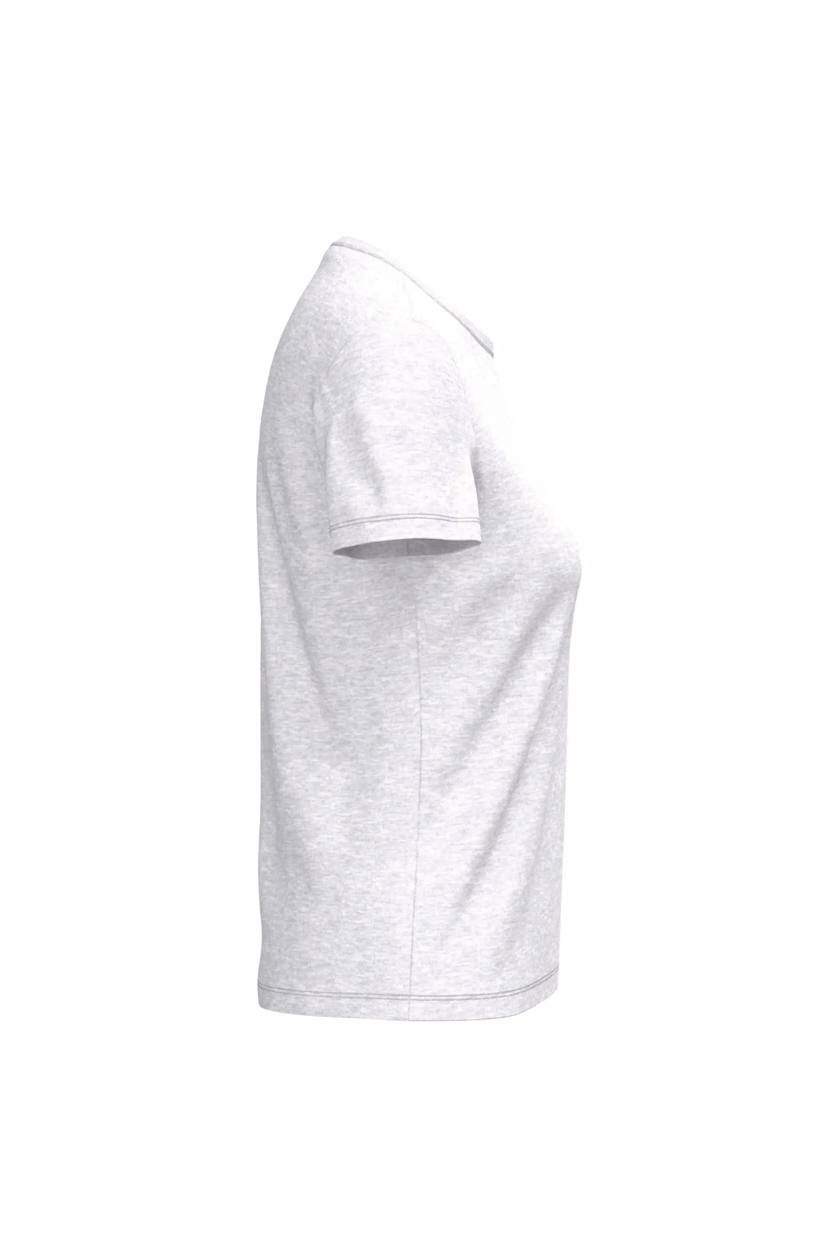 Effen kleuren : 100% katoen. Kleur Ash Heather 98% katoen / 2% viscose en Oxford Grey : 90% katoen / 10% viscose. Alle kleuren zijn gemaakt van biologisch katoen in omschakeling. Ronde hals in ribboord met elasthan. Toon-op-toon nektape. Dubbel stiksel aan mouwuiteinden en onderkant. Gecertificeerd STANDARD 100 by OEKO-TEX®N° CQ1007/7, IFTH.