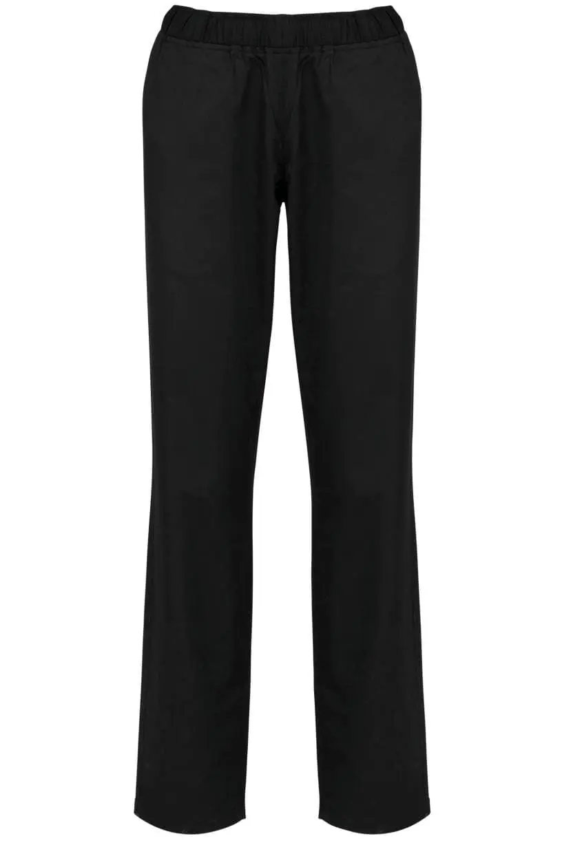 65% polyester / 35% katoen. Twillstof. Norm ISO 15797 Industrieel wassen 75 °C (20 wasbeurten). 2 Italiaanse zijzakken + 1 opgezette achterzak met verstevigingen. Elastische tailleband met aanrijgkoordjes aan de binnenkant. Tear-away merklabel.