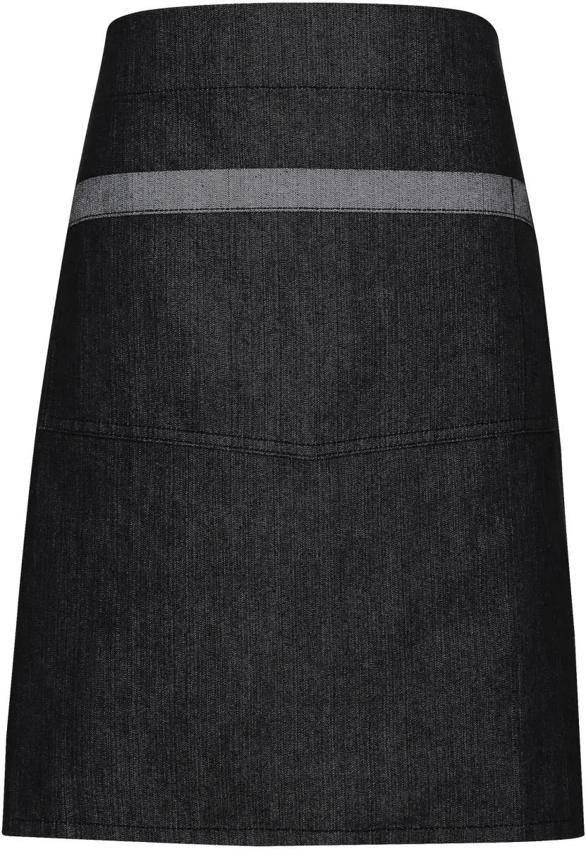 70% katoen / 30% polyester. Dit halflange schort straalt een zekere ‘industriële’ charme uit, met grote metalen ogen daar waar de heuplinten vastzitten. De contrasterende achterkant is zichtbaar op de zakken en de linten, voor een omkeerbare stijl. Halflange heupschort. Lengte: 50 cm. Breedte: 70 cm. In het midden een zak van 36 cm met een vak voor een pen en een contrasterende afwerking. Contrasterende linten (100 cm lang) en bevestigingssysteem met metalen oogjes. Lengte: 50 cm. Breedte: 70 cm.