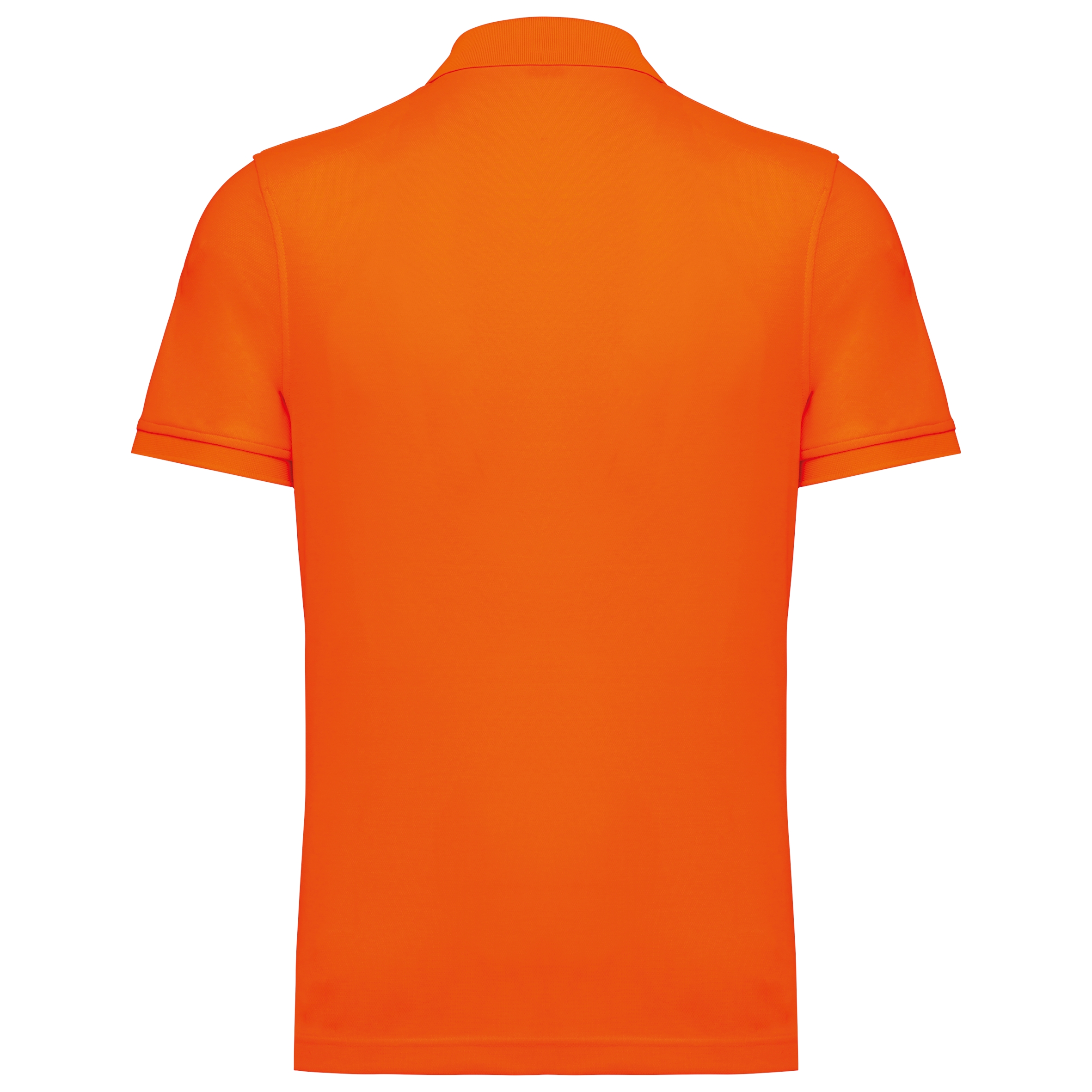 60% gekamd katoen / 40% gerecycleerd polyester. Interlock-piquétricot. Comfortabele pasvorm. Industrieel wassen. Drogen in de tunneldroger. Kraag en mouwuiteinden in 1×1 ribboord. Nektape in de kraag. De kraag sluit met 2 onder een lijst verborgen drukknopen. De schouders zijn binnenin verstevigd met twillstof van 65% polyester / 35% katoen om vervorming tijdens het industrieel wassen en het tunneldrogen te voorkomen. RFID-tasje onder aan het kledingstuk onder het label. Dubbel stiksel aan de onderkant. Geweven merklabel.