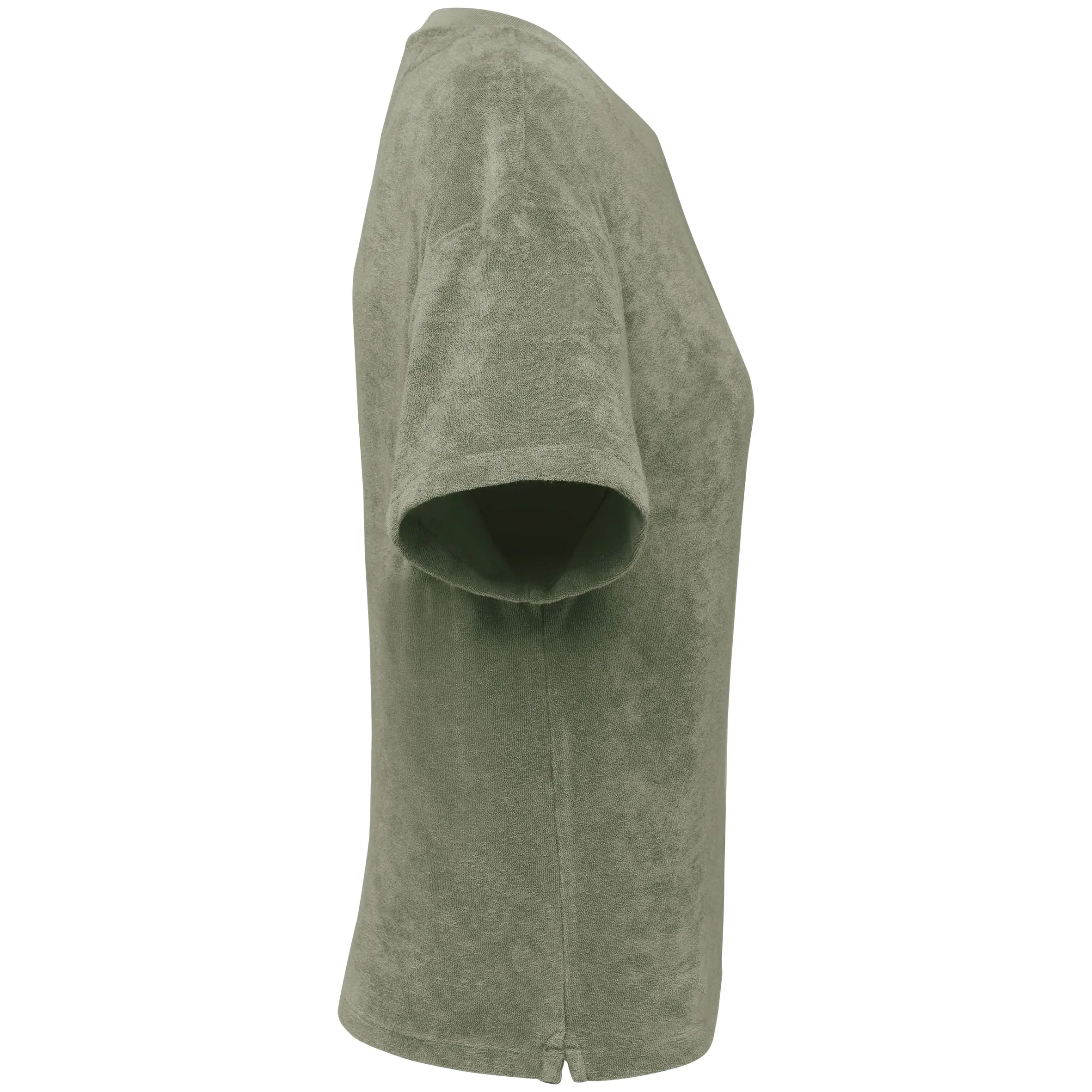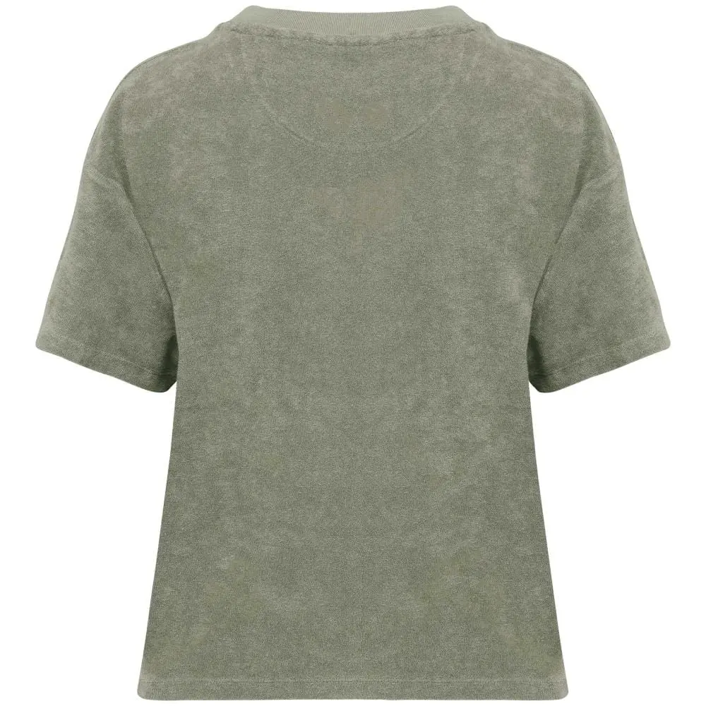 80 % biologisch katoen / 20 % gerecycled polyester post-consumer. Geproduceerd in Portugal. Gekamd katoen. In spons. Oversized model. Zijnaden. Enzymgewassen. 1 x 1 ribboord. Nektape in de hoofdstof in de kraag. Halvemaan op de achterkant. Zijsplitten met keperafwerking binnenin. Zoom met dubbel stiksel aan de mouwuiteinden en onderkant.