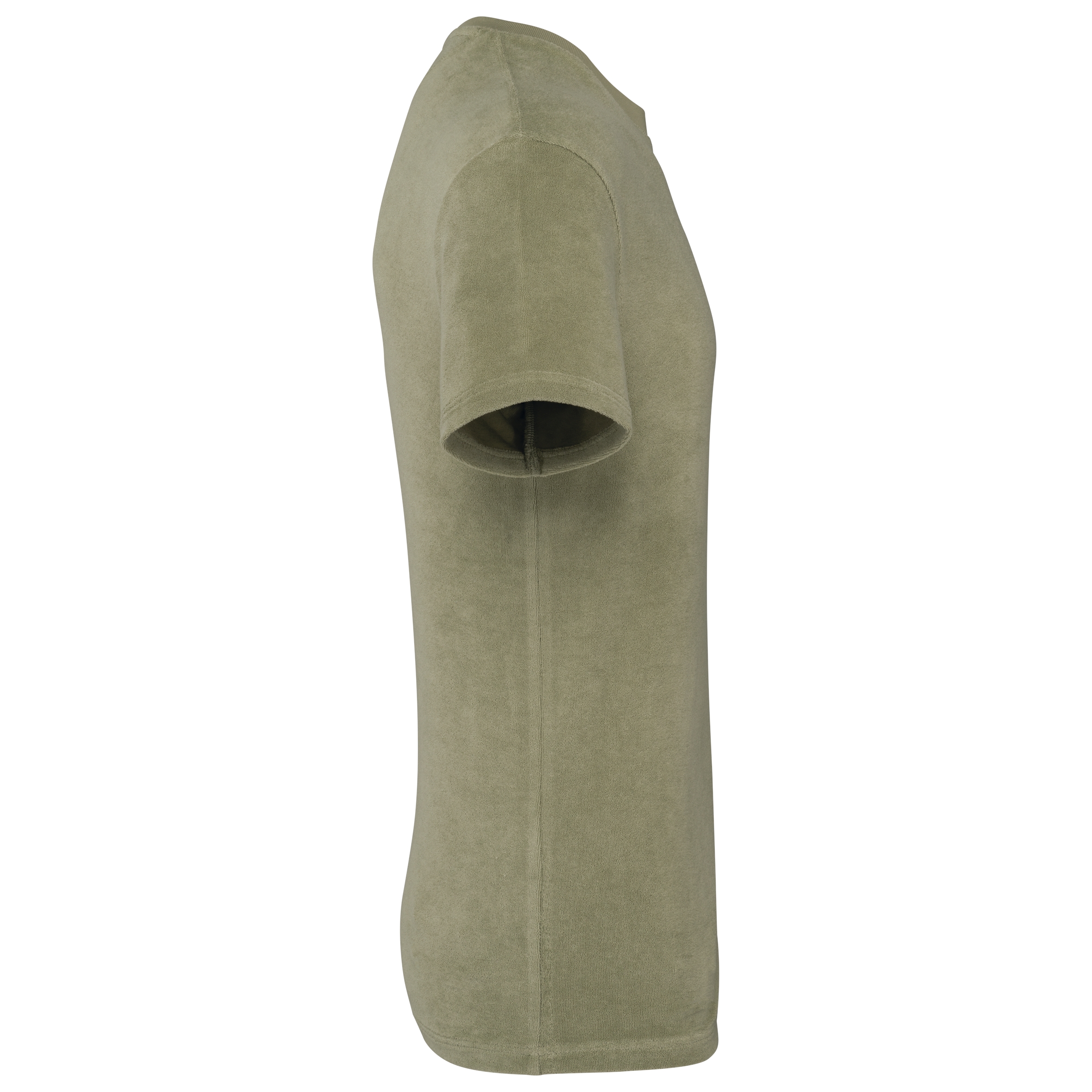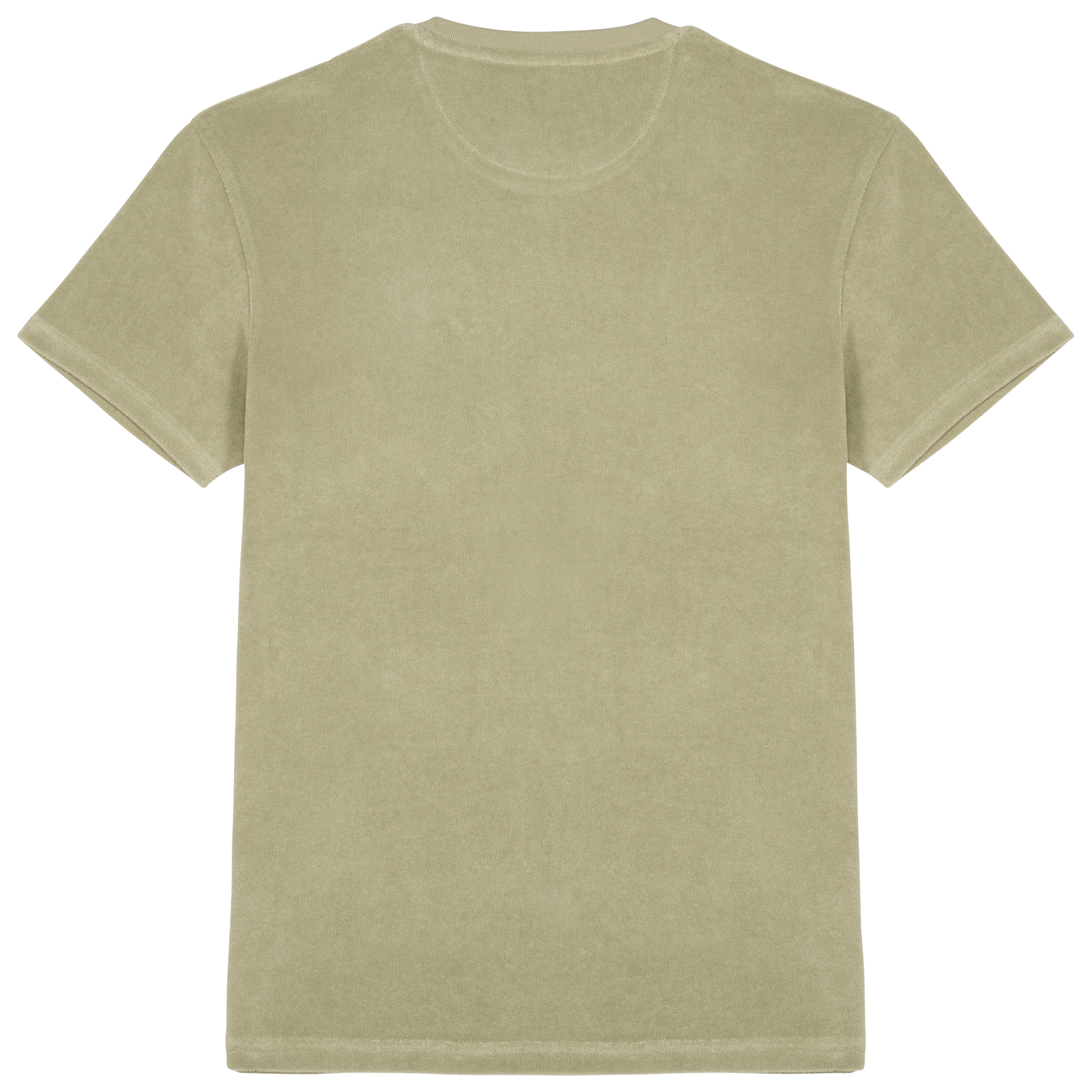 80% biologisch katoen / 20% post-consumer gerecycled polyester. Geproduceerd in Portugal. Gekamd katoen. Tricot. Van badstof. Enzymgewassen product. Fitted pasvorm. Afwerking van de halsopening met ton-sur-ton nektape met visgraatmotief. Kraag van 1×1 ribboord. Schouderversteviging. Afgewerkt met dubbel stiksel aan de manchetten en onderkant. Halvemaan op de achterkant.