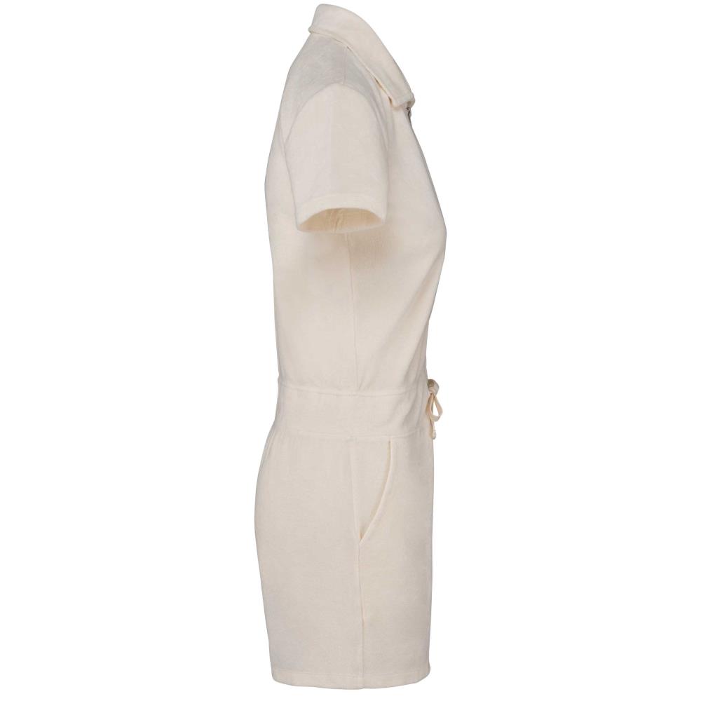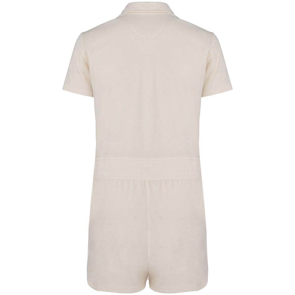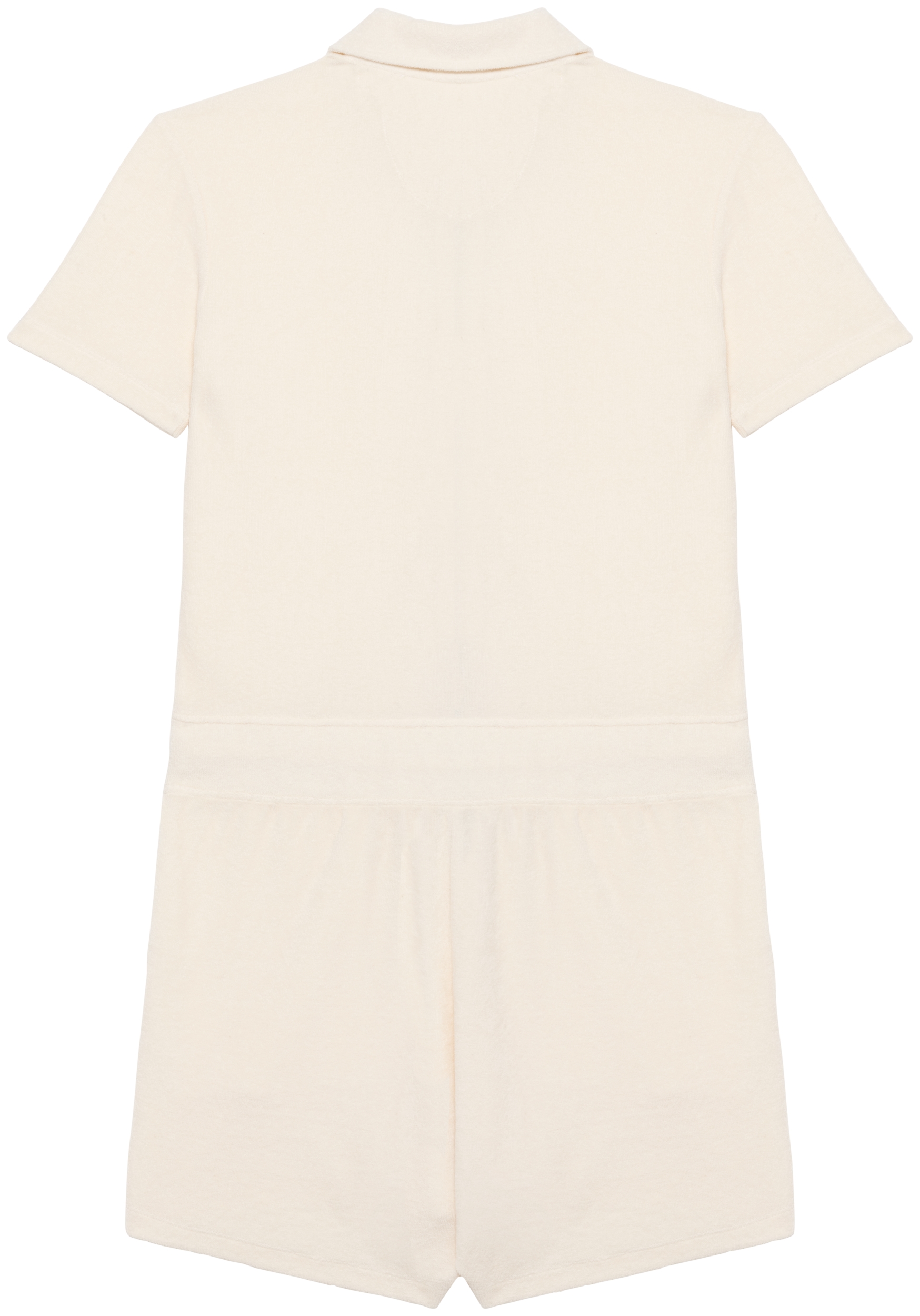 80 % biokatoen en 20 % post-consumer gerecycled polyester. Gemaakt in Portugal. Gekamd katoen. In spons. Enzymwas. Rechte snit. Halsopening afgewerkt met nektape met ton-sur-ton visgraatmotief. Zoom met dubbel stiksel aan de mouwuiteinden en onderaan. Opgezette tailleband met aanrijgkoordjes en geborduurde ringetjes. Sluit in het midden vooraan met een rits van gerecycleerd metaal. Twee zijzakken op de taille met stiksel aan de opening. Halvemaan op de achterkant.
