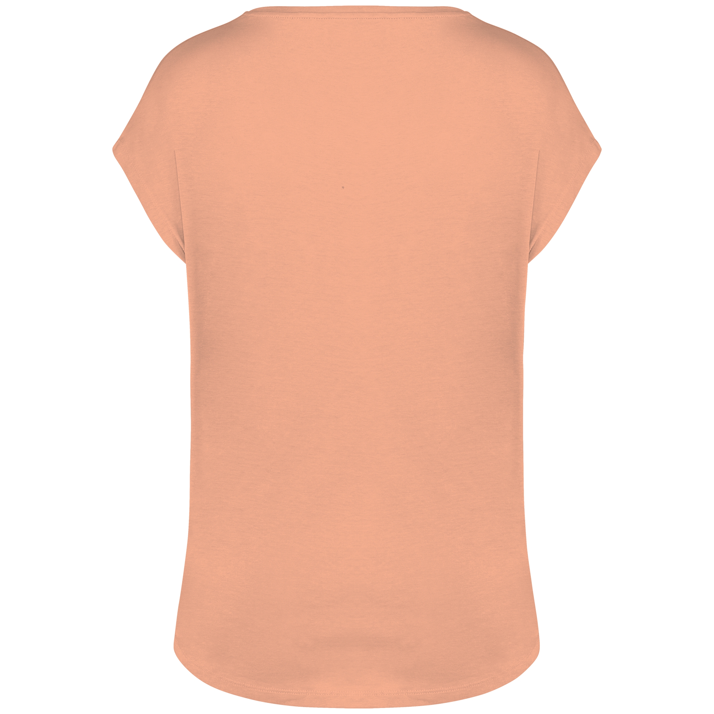 100 % biologisch katoen. Gekamd en ringgesponnen katoen. Oversized model. V-hals en kimonomouwen. Zijnaden. Enzymgewassen. Kraag in de hoofdstof. Nektape in de hoofdstof in de kraag. Schouderversteviging in de hoofdstof. Zoom met dubbel stiksel aan de. mouwuiteinden en onderkant.