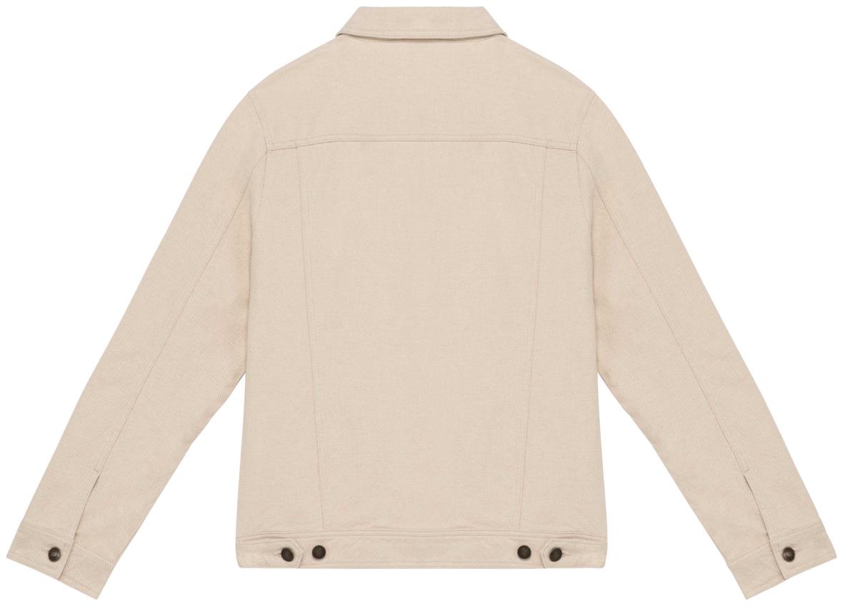 90 % biologisch katoen / 10 % hennep. Twillkatoen. Comfortabele snit. Knopen van gerecycleerd metaal. Natuurlijke stof (ongeverfd) met een authentieke look. Enzymgewassen product. Twee borstzakjes met klep en knoopje. Knooplijst. Aansnoerende knooplijst op de achterkant onderaan. Twee omzoomde zijzakken vooraan. Inzetsels op de voor- en achterkant. Mouwen met een split en knoopjes aan de mouweinden.