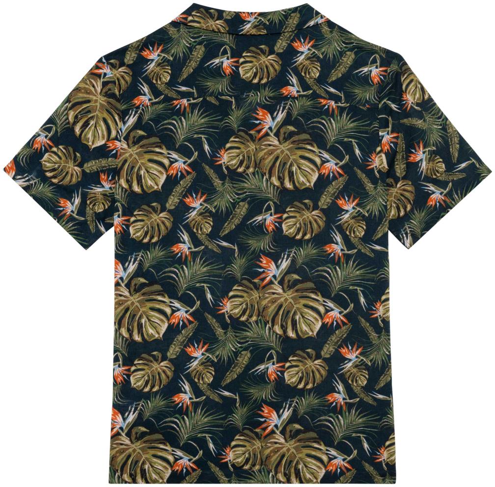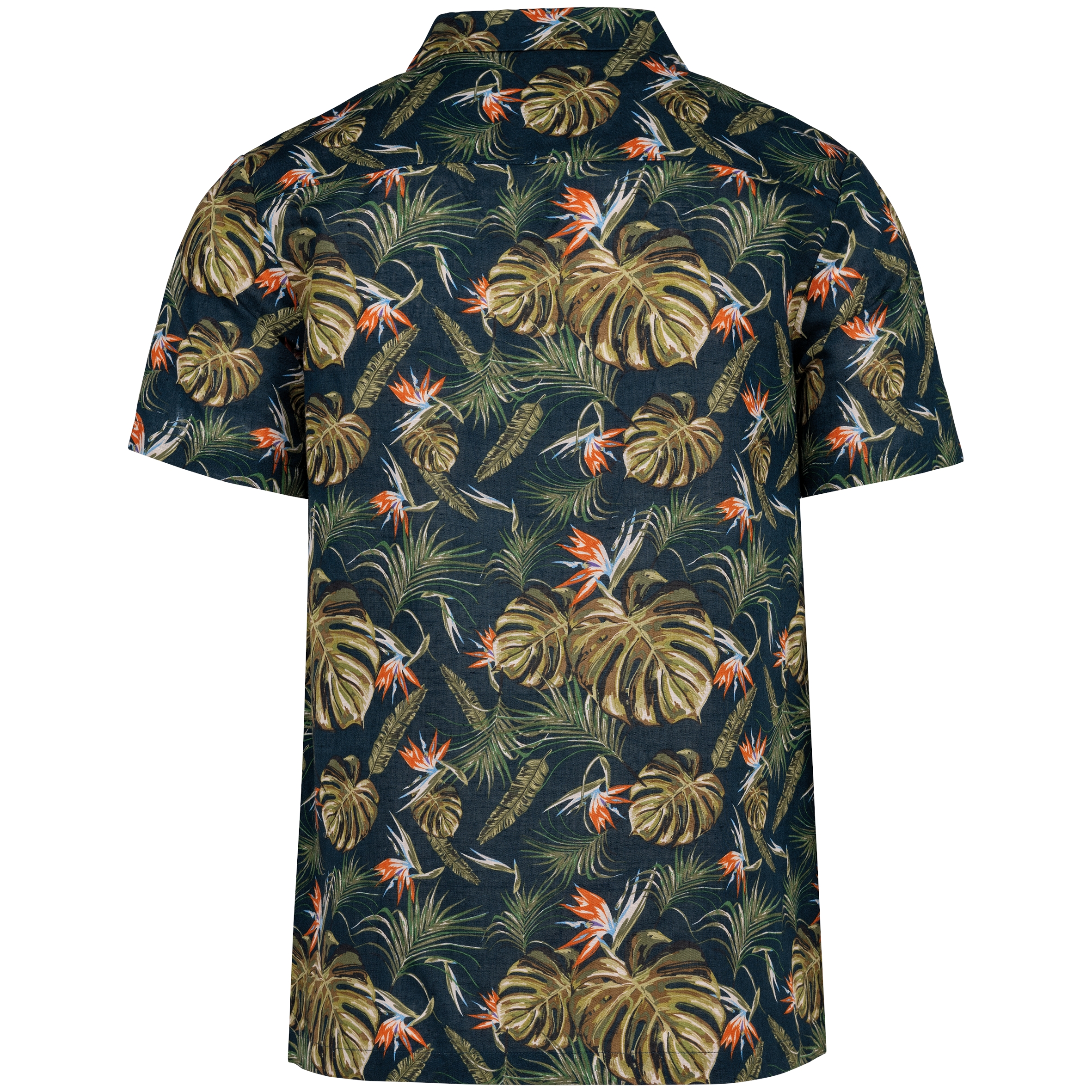 62% linnen / 38% biokatoen. Geweven. Fitted pasvorm. Bowlingkraag. Knooplijst met ton-sur-ton knopen en oplegsel aan de binnenkant. Gevoerd inzetsel op de rug. Geweven met doorlopende gedrukte motieven. Enkel stiksel aan de mouwuiteinden en onderaan. Kledingstuk gewassen na montage: kleuren kunnen per product verschillen.