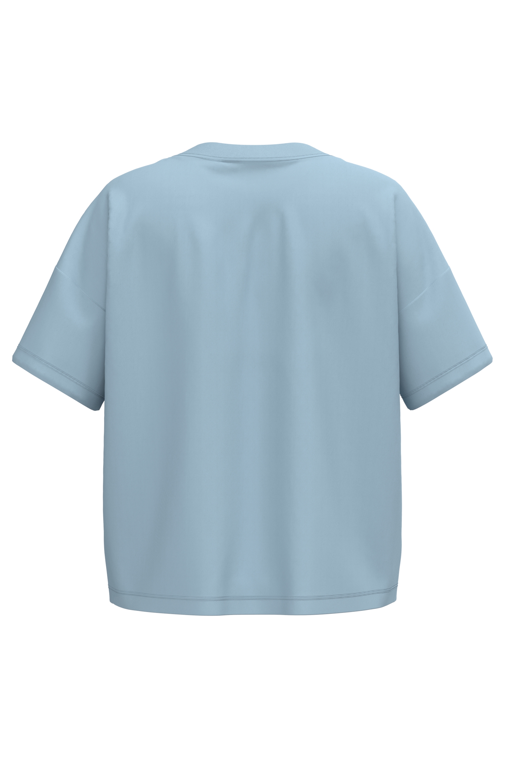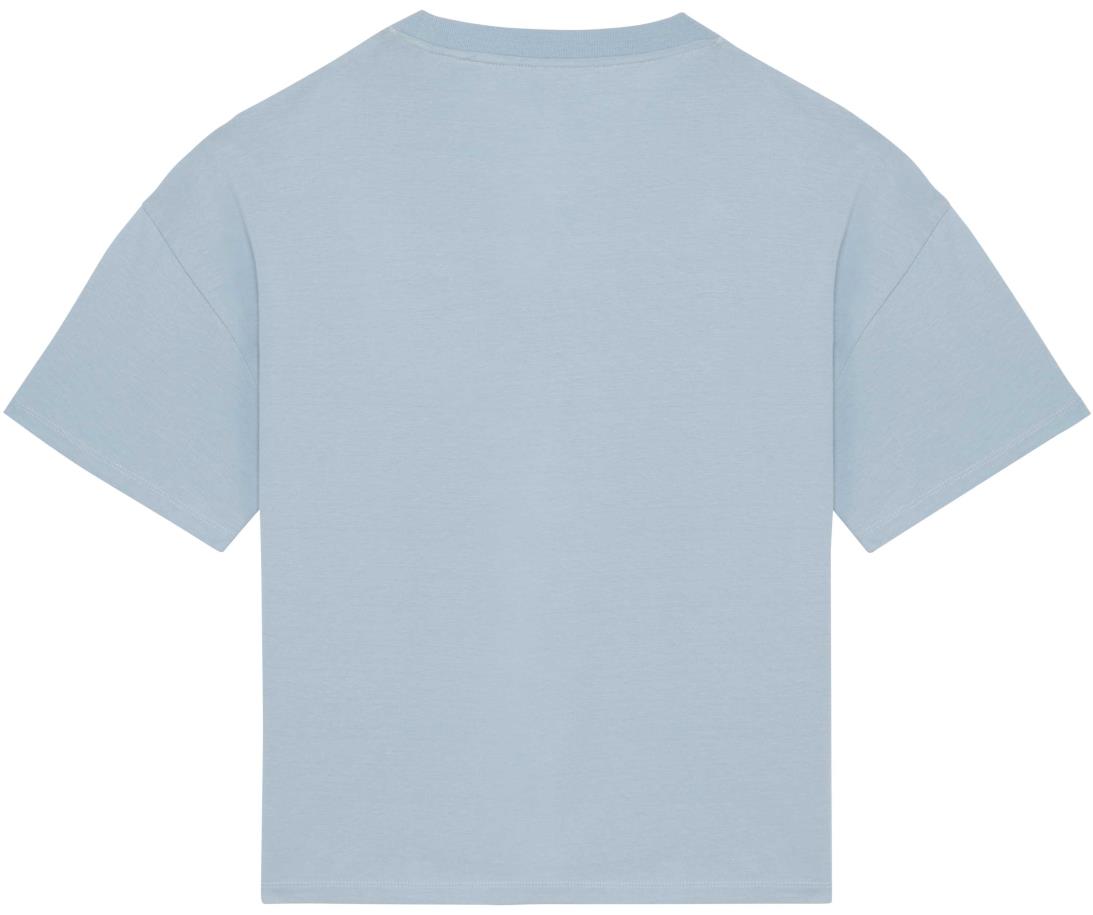 100 % biologisch katoen. Gekamd en ringgesponnen katoen. Loose model en afhangende schouders. Zijnaden. 1 x 1 ribboord in de kraag en geribd stiksel. Nektape in de hoofdstof in de kraag. Zoom met dubbel stiksel aan de mouwuiteinden en onderkant.