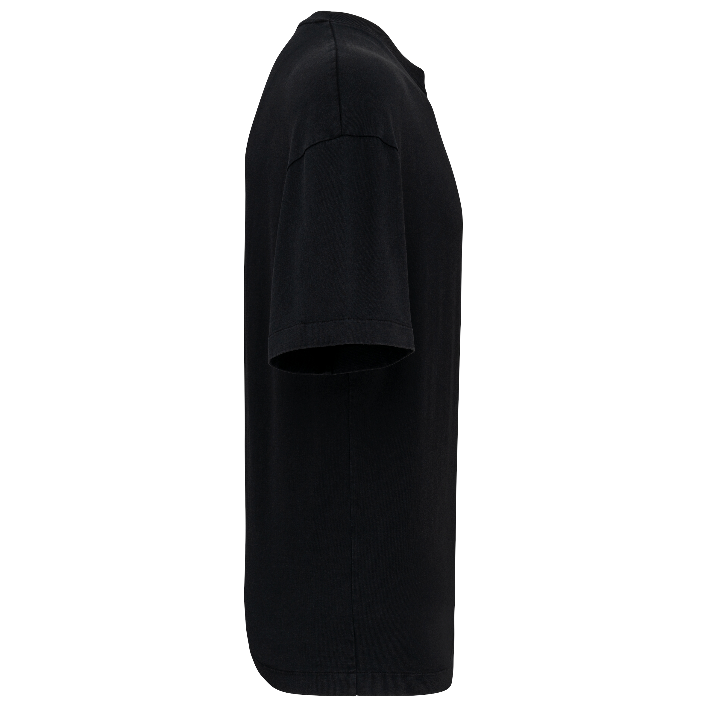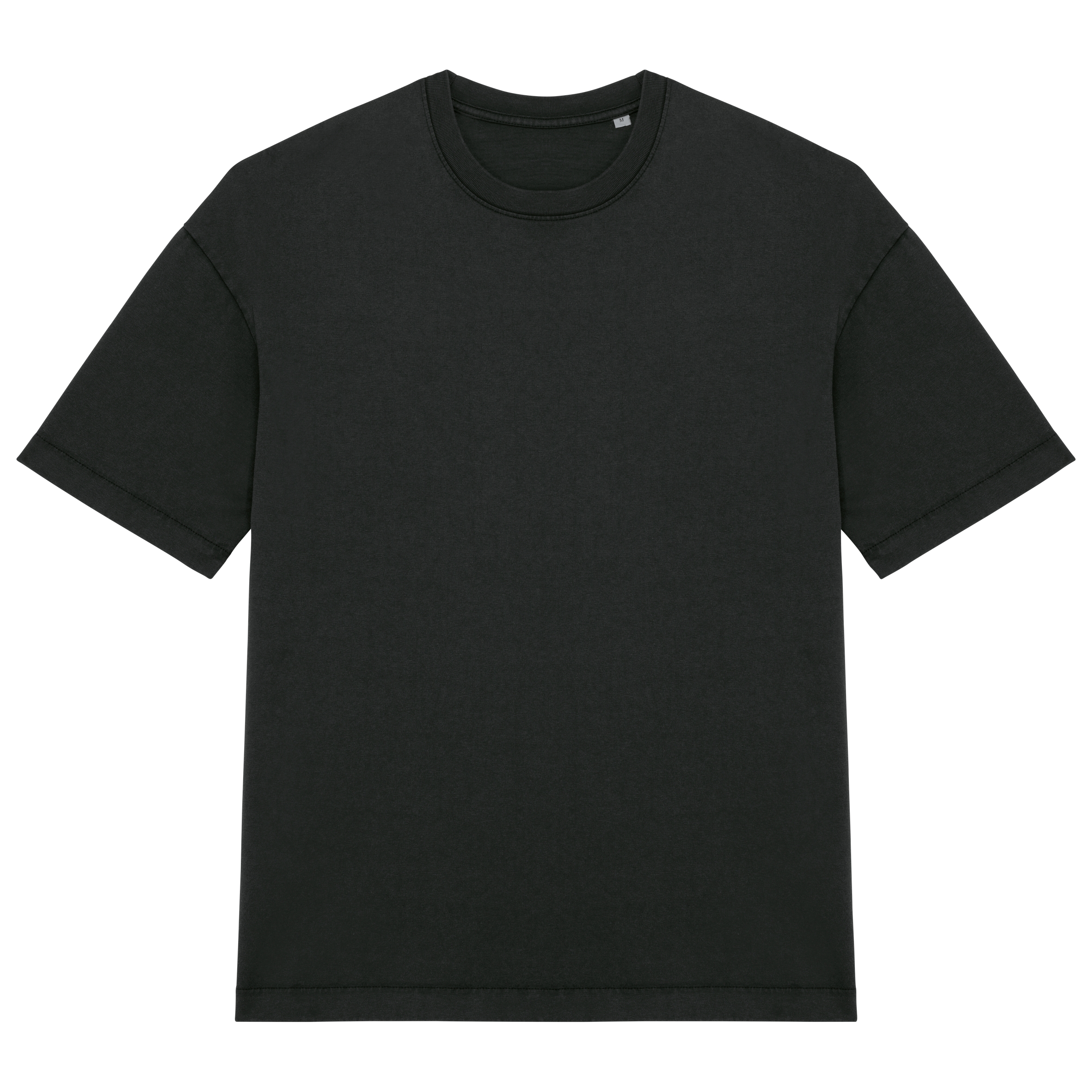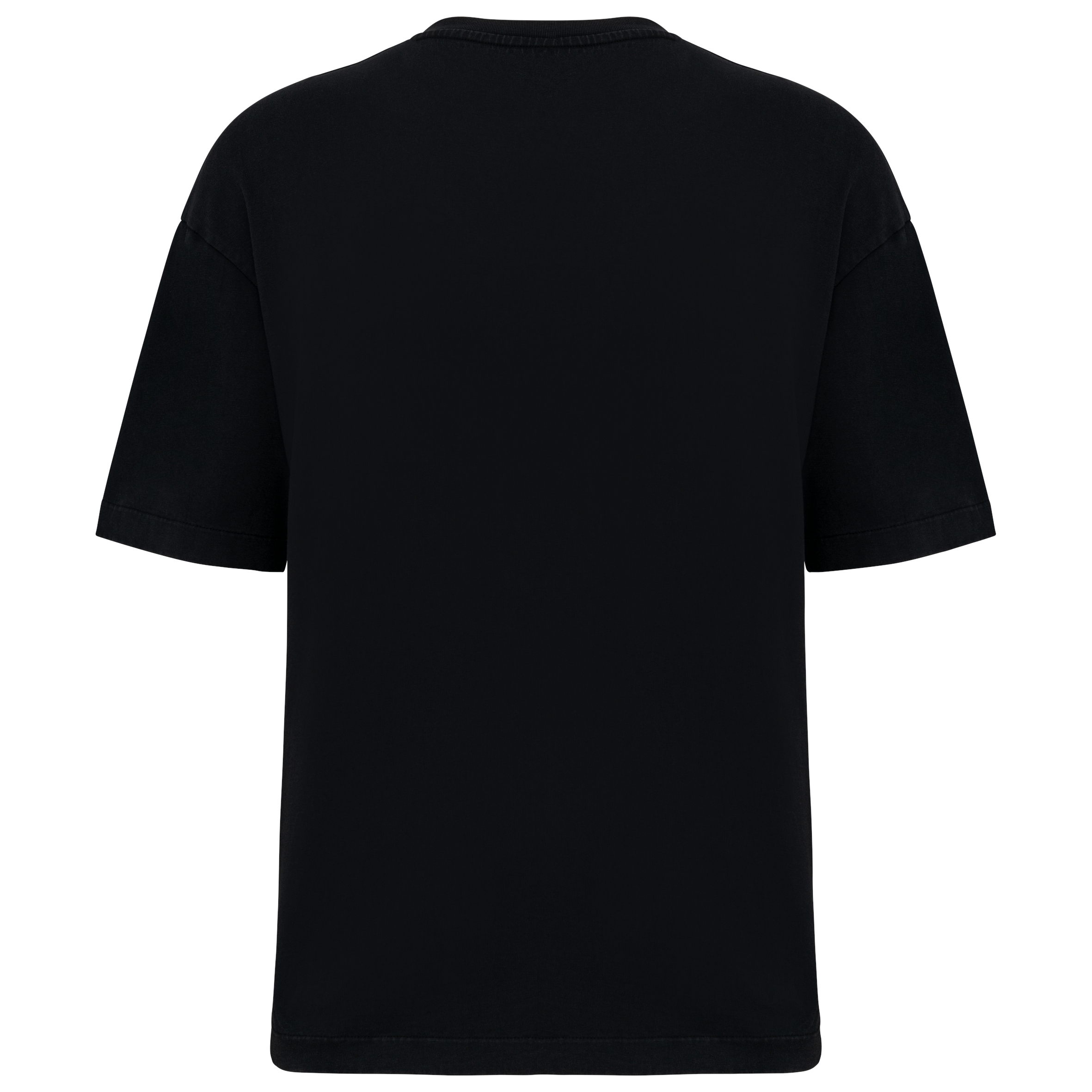 100% biokatoen. Jerseytricot. Gekaard katoen. Oversized model met afhangende schouders. Enzymgewassen. Zijnaden. 1×1 ribboord in de kraag. Ton-sur-ton nektape in de hoofdstof om de binnenkant van de kraag af te werken. Schouderversteviging. De mouwuiteinden en de zoom zijn afgewerkt met enkel stiksel. Kledingstuk geverfd na montage: de kleuren kunnen licht variëren van het ene tot het andere kledingstuk. Dit product kan kleur afgeven in contact met lichtere stoffen of kleding.
