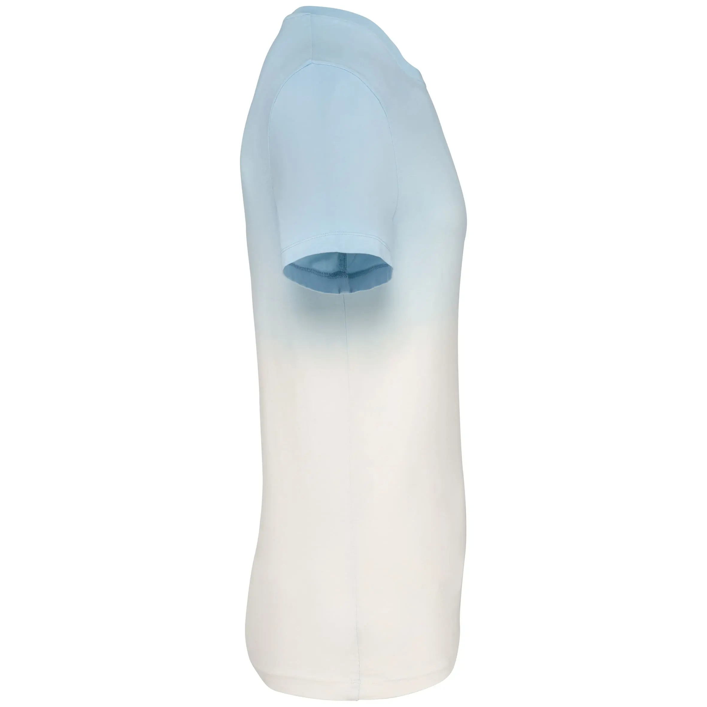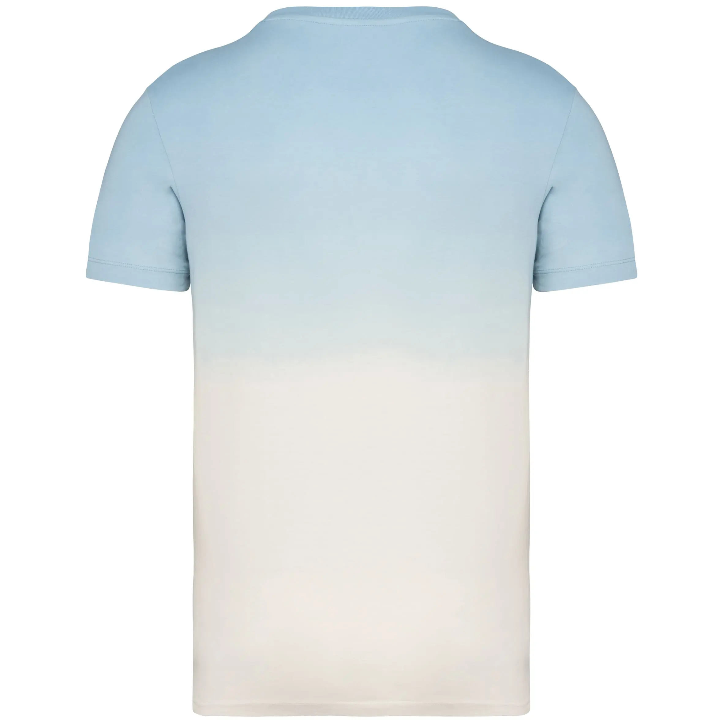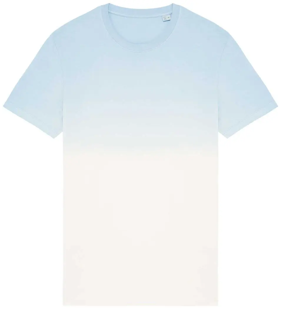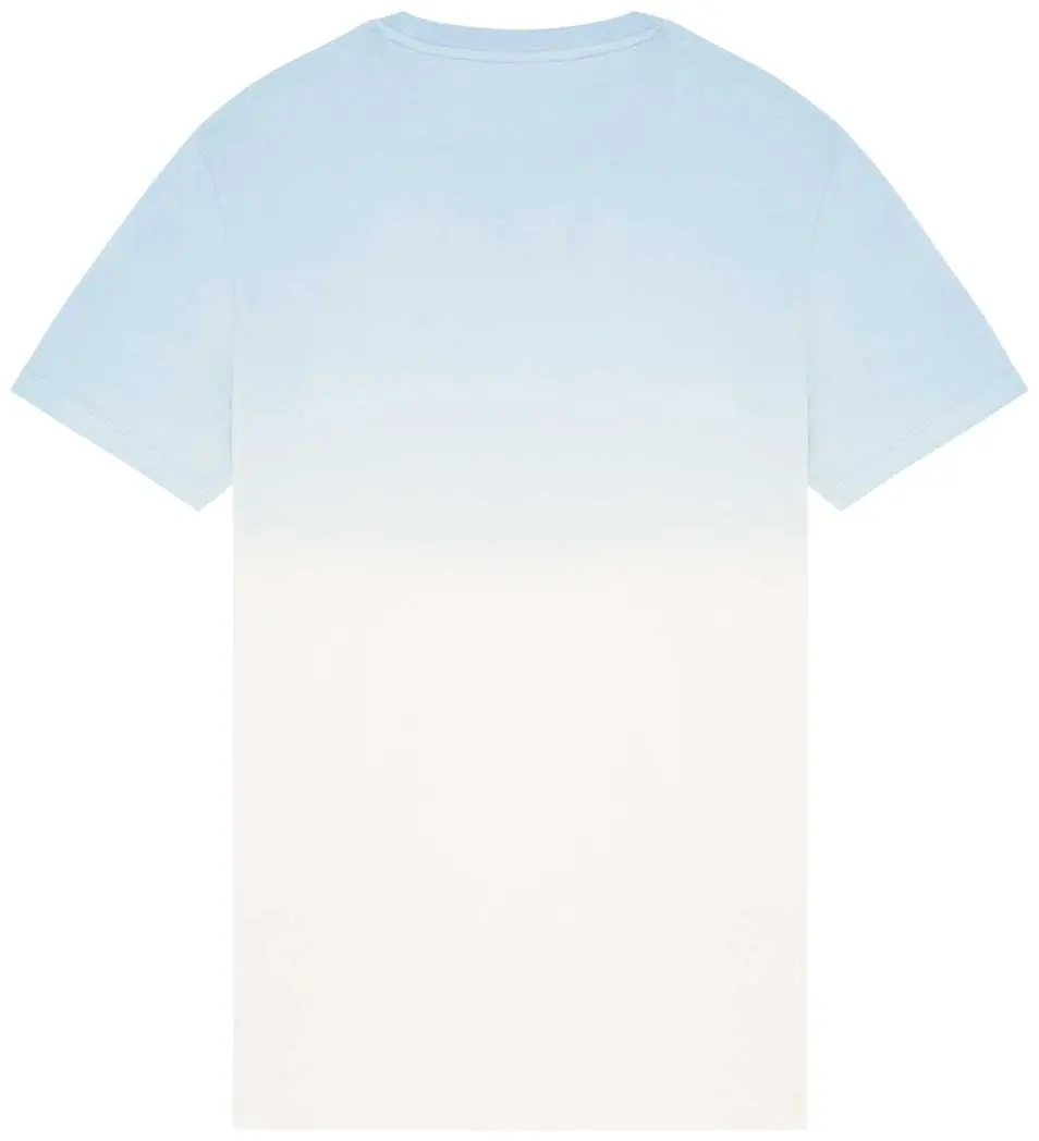 100 % biologisch katoen. Gekamd en ringgesponnen katoen. Fitted pasvorm. Zijnaden. Enzymgewassen. 1 x 1 ribboord Nektape in de hoofdstof in de kraag. Zoom met dubbel stiksel aan de mouwuiteinden en onderkant. Kledingstuk na montage geverfd met Dip-Dye-effect: de kleuren kunnen licht variëren.