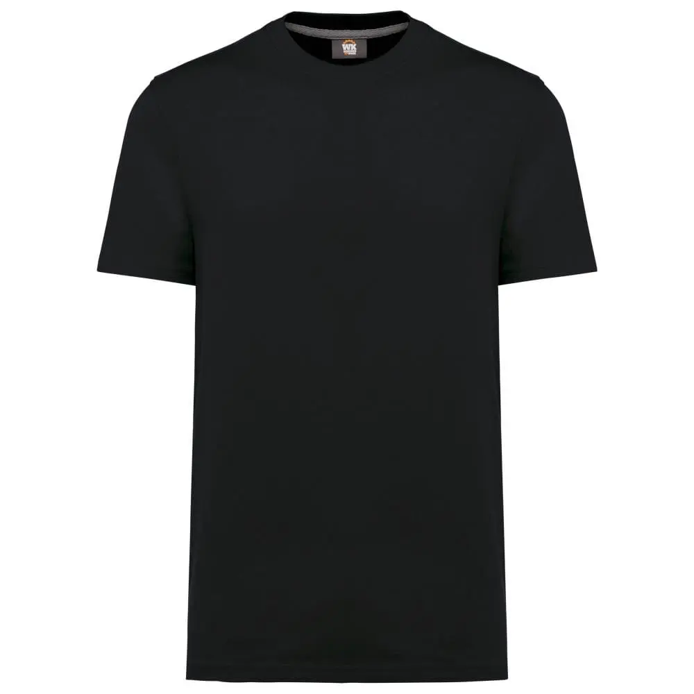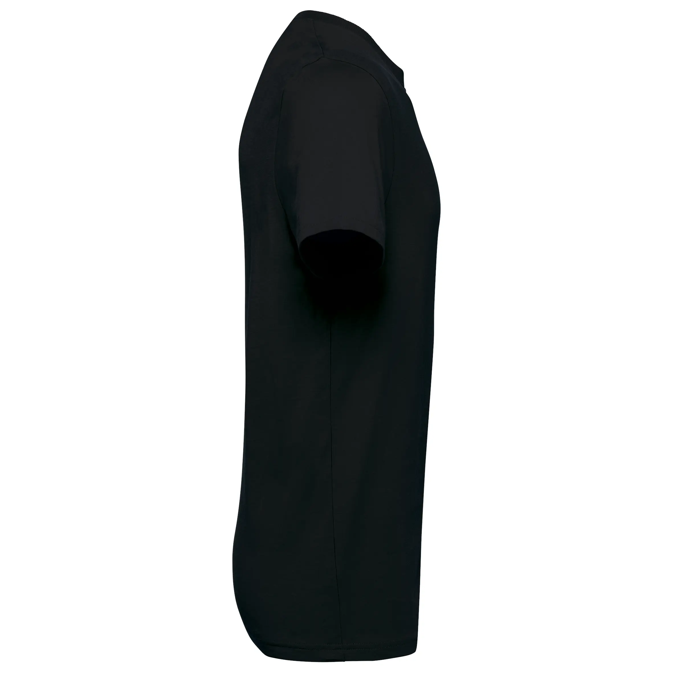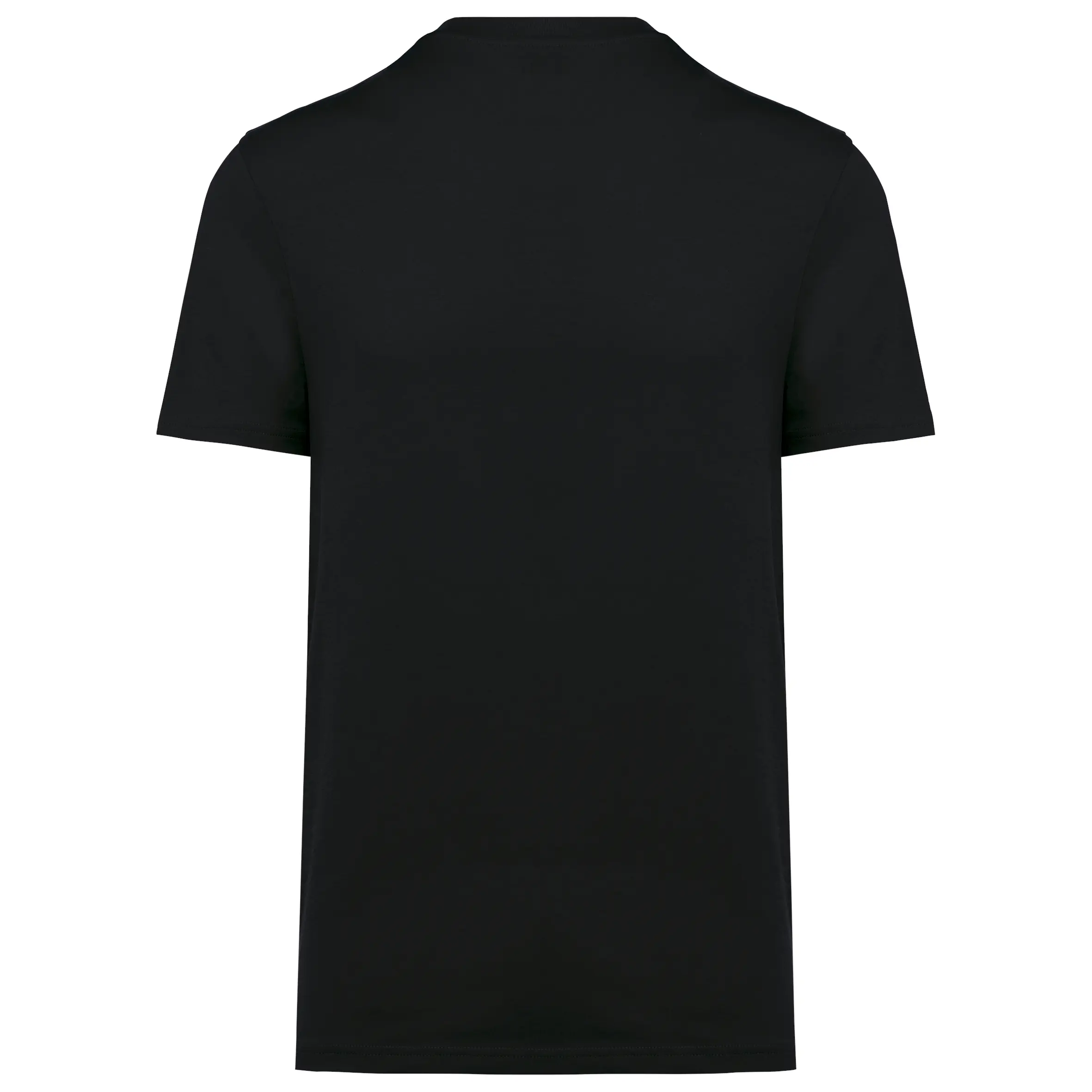 Effen kleuren: 100% katoen. Gemaakt van 100% biologisch katoen. Gevlamde kleuren: 92% katoen / 8% polyester. Gemaakt van 92% biologisch katoen. Fluokleuren: 65% polyester / 35% katoen. Gemaakt van 65% gerecycleerd polyester. Rechte snit. Ronde halsopening in 2×1 ribboord met elasthan en oranje nektape op de effen en gevlamde kleuren en toon-op-toon op de fluokleuren. Dubbel stiksel aan mouwuiteinden en onderkant. Tear-away merklabel. Gecertificeerd STANDARD 100 by OEKO-TEX®N° CQ1007/7, IFTH.