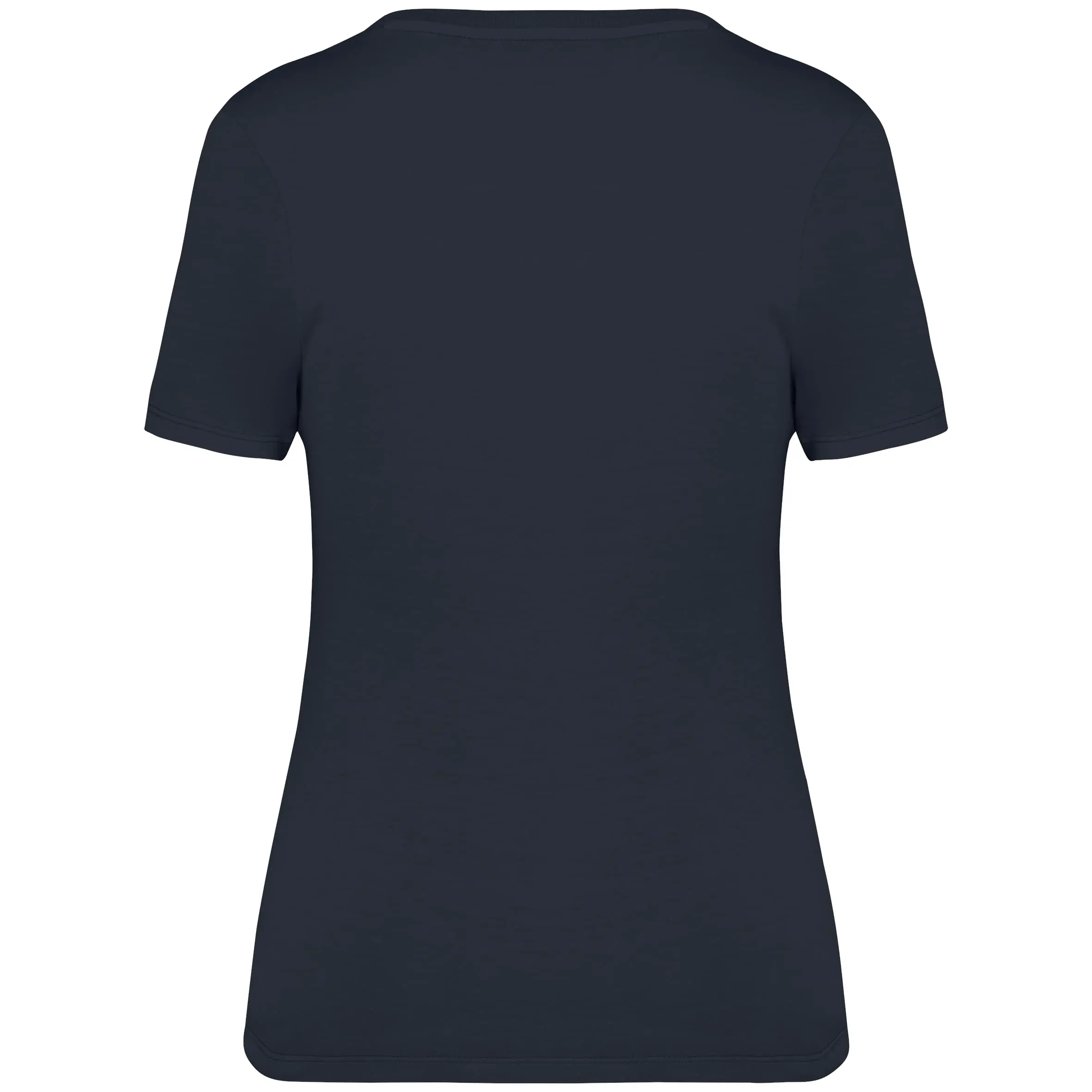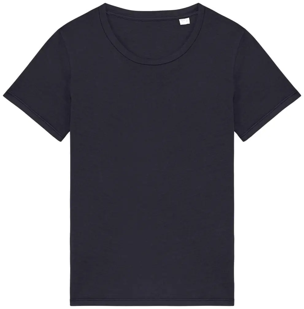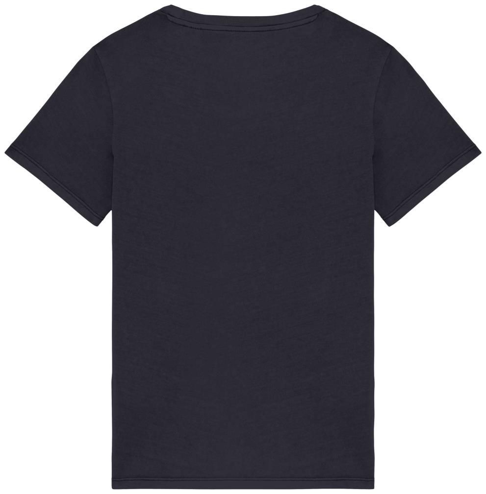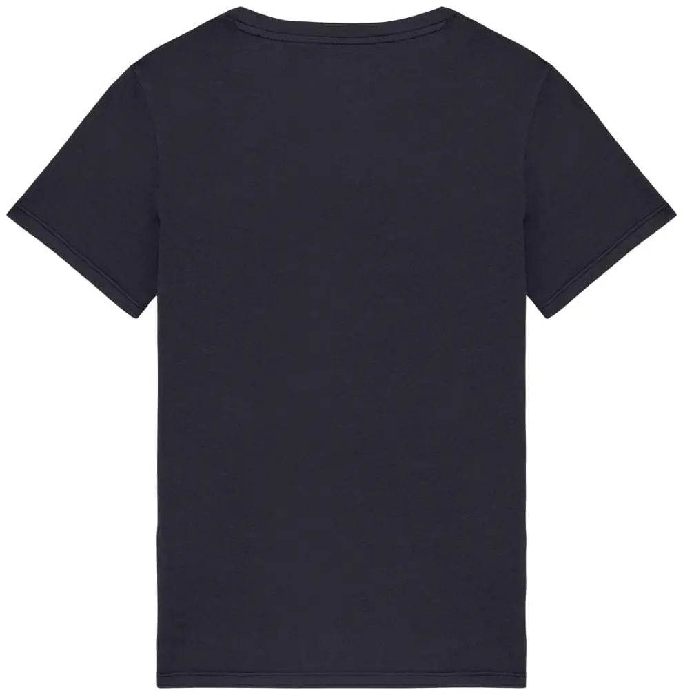 100 % biologisch katoen. Gekamd en ringgesponnen katoen. Fitted pasvorm. Zijnaden. Enzymgewassen. 1 x 1 ribboord. Nektape in de hoofdstof in de kraag. Halsopening met enkel stiksel. Zoom met dubbel stiksel aan de mouwuiteinden en onderkant. Kleding geverfd na confectie: de kleuren kunnen per stuk licht verschillen. Dit product kan afgeven als het in contact komt met andere oppervlakken of kleding.