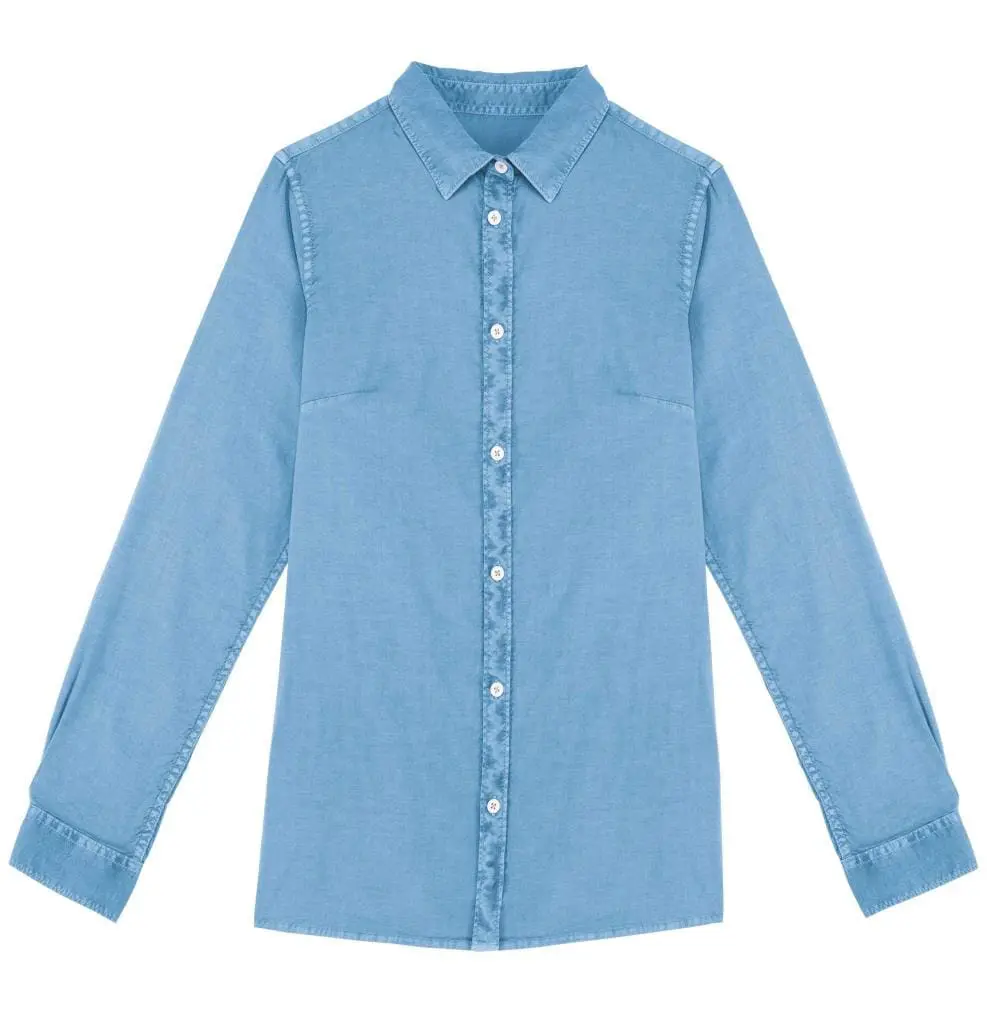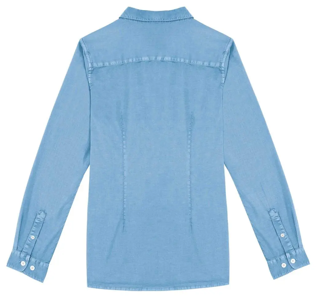 100 % biologisch katoen. Gekamd katoen. Fitted pasvorm. Klassieke knooplijst met knopen met parelmoereffect. Inzetsel op de achterkant met casual ‘ronde plooi’. Mouwen afgewerkt met puntvormige mouwlijst met knoopjes. Kleding geverfd na confectie: de kleuren kunnen per stuk licht verschillen. Dit product kan afgeven als het in contact komt met andere oppervlakken of kleding.