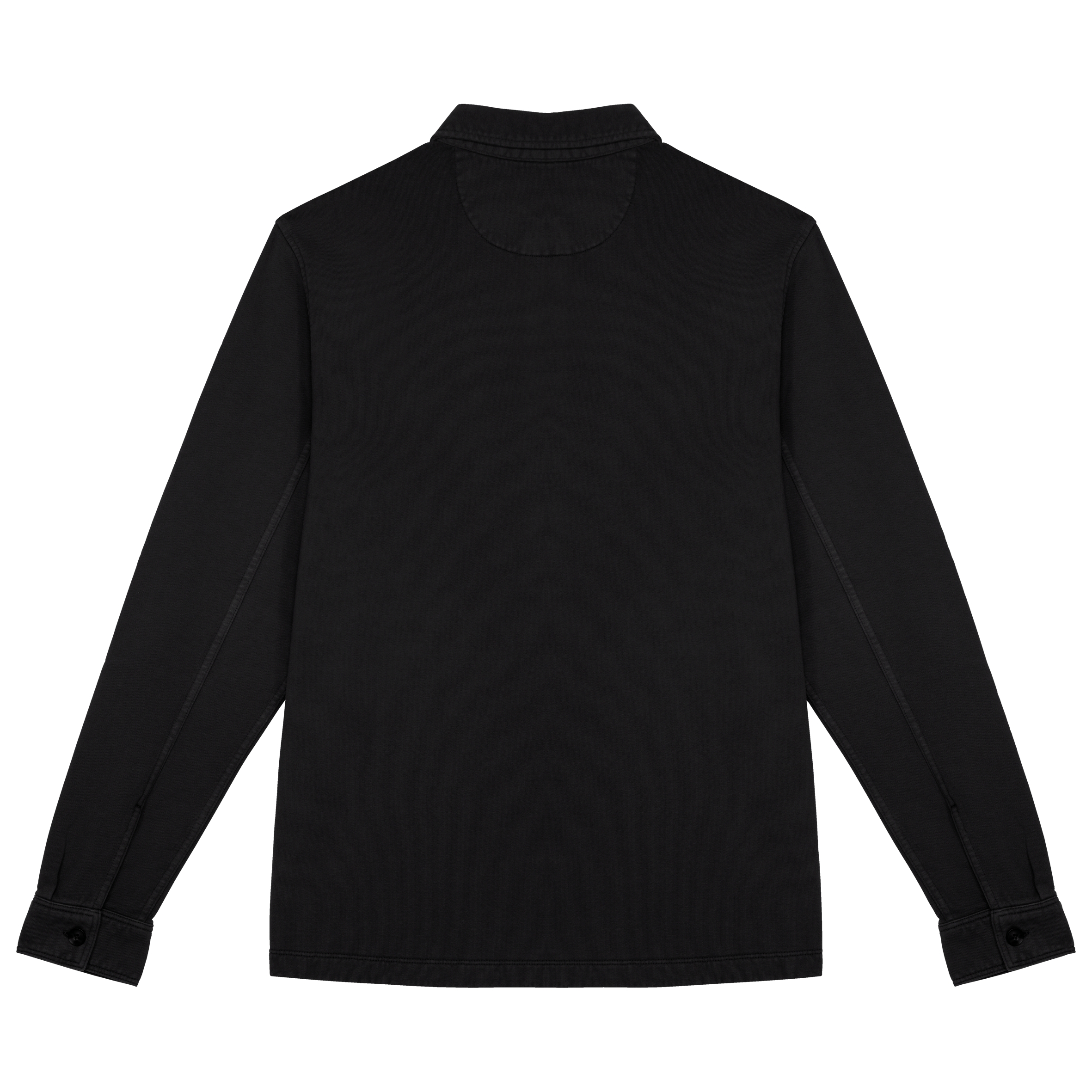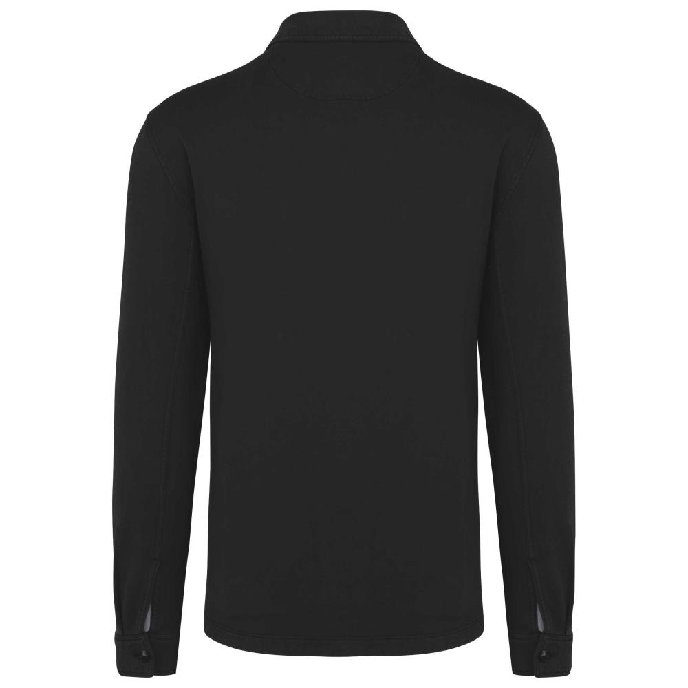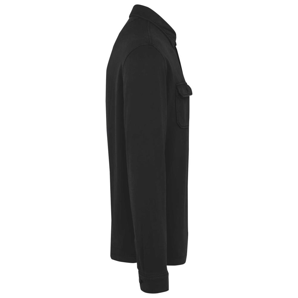 100% biokatoen. Rechte snit. Tricot. Aan de binnenkant geborsteld fleece 3 draden. Verwassen look. Knooplijst met contrasterende knopen in hoornlook van gerecycled plastic. Polsband met knopen en split. Kraag met staander. Afwerking van de halsopening met ton-sur-ton nektape met visgraatmotief. Twee opgezette zakken met klep en knoop. Zoom met dubbel stiksel onderaan. Halvemaan op de achterkant. Kledingstuk geverfd na montage: mogelijk zijn er lichte kleurverschillen tussen de producten. Dit product kan afgeven in contact met lichtere stoffen of kleding. Certificering in uitvoering.
