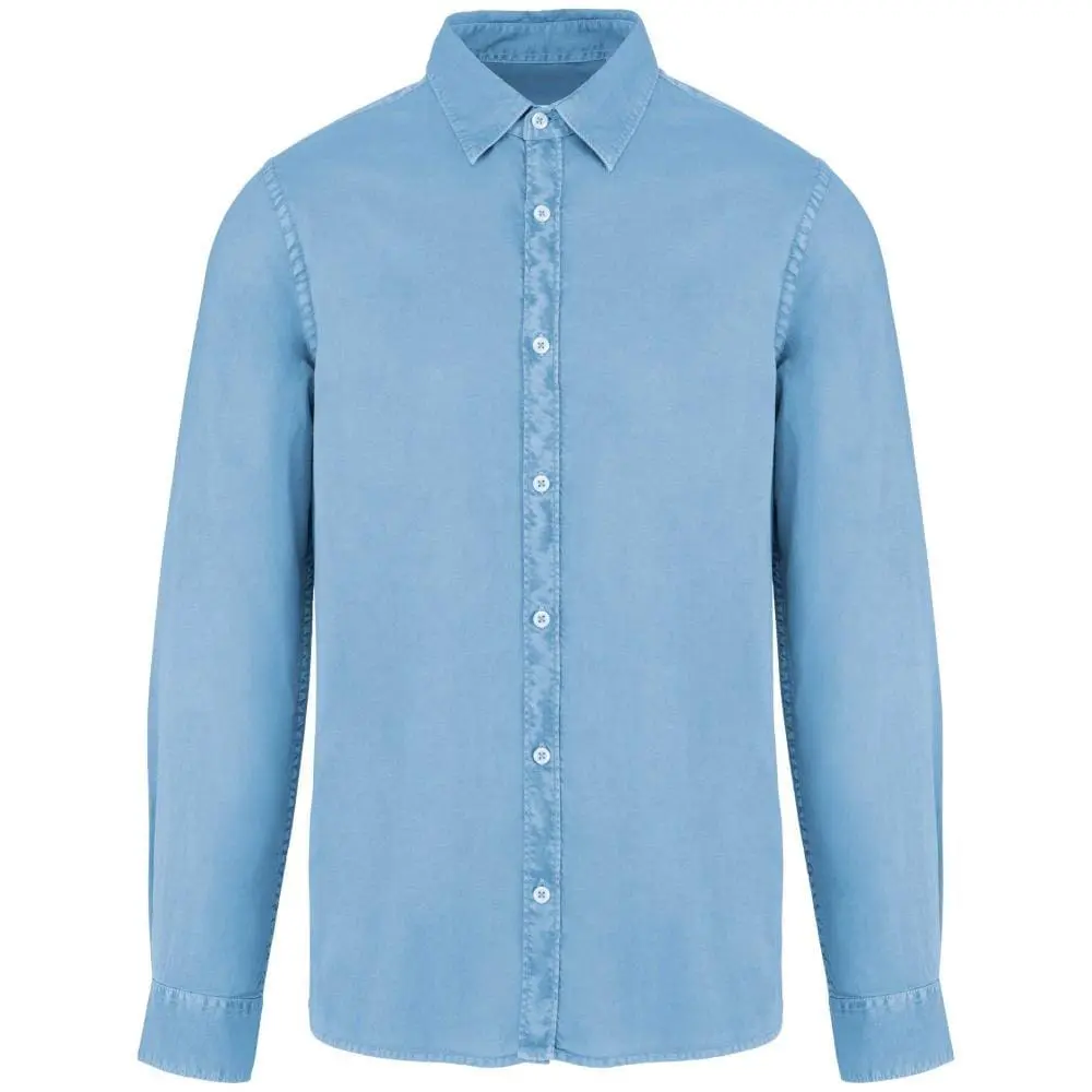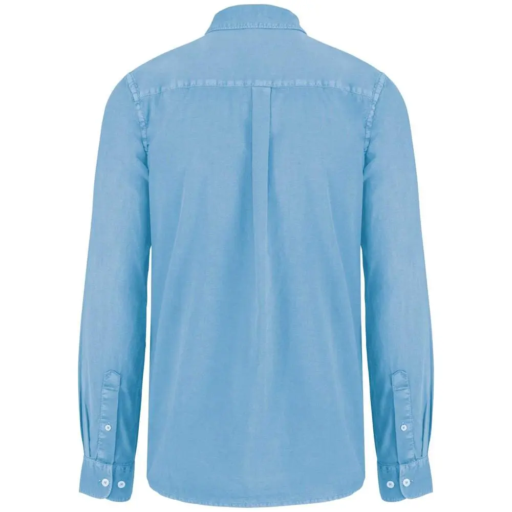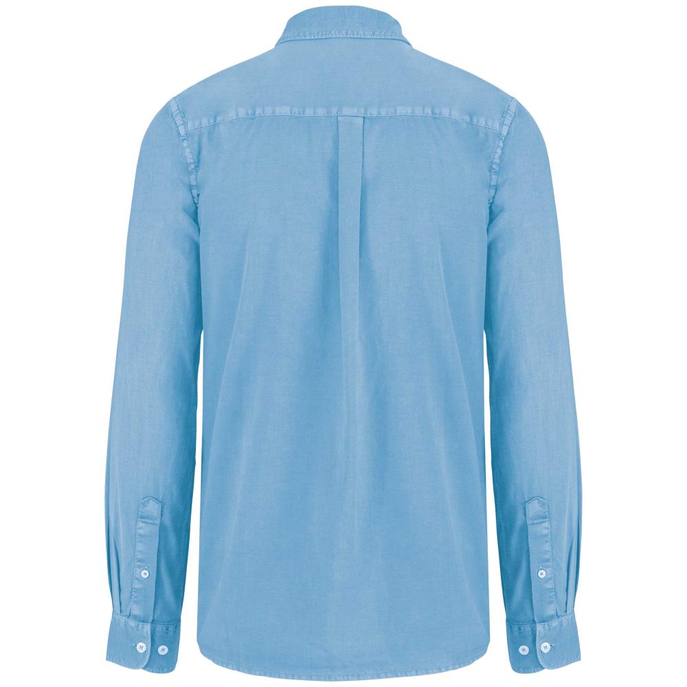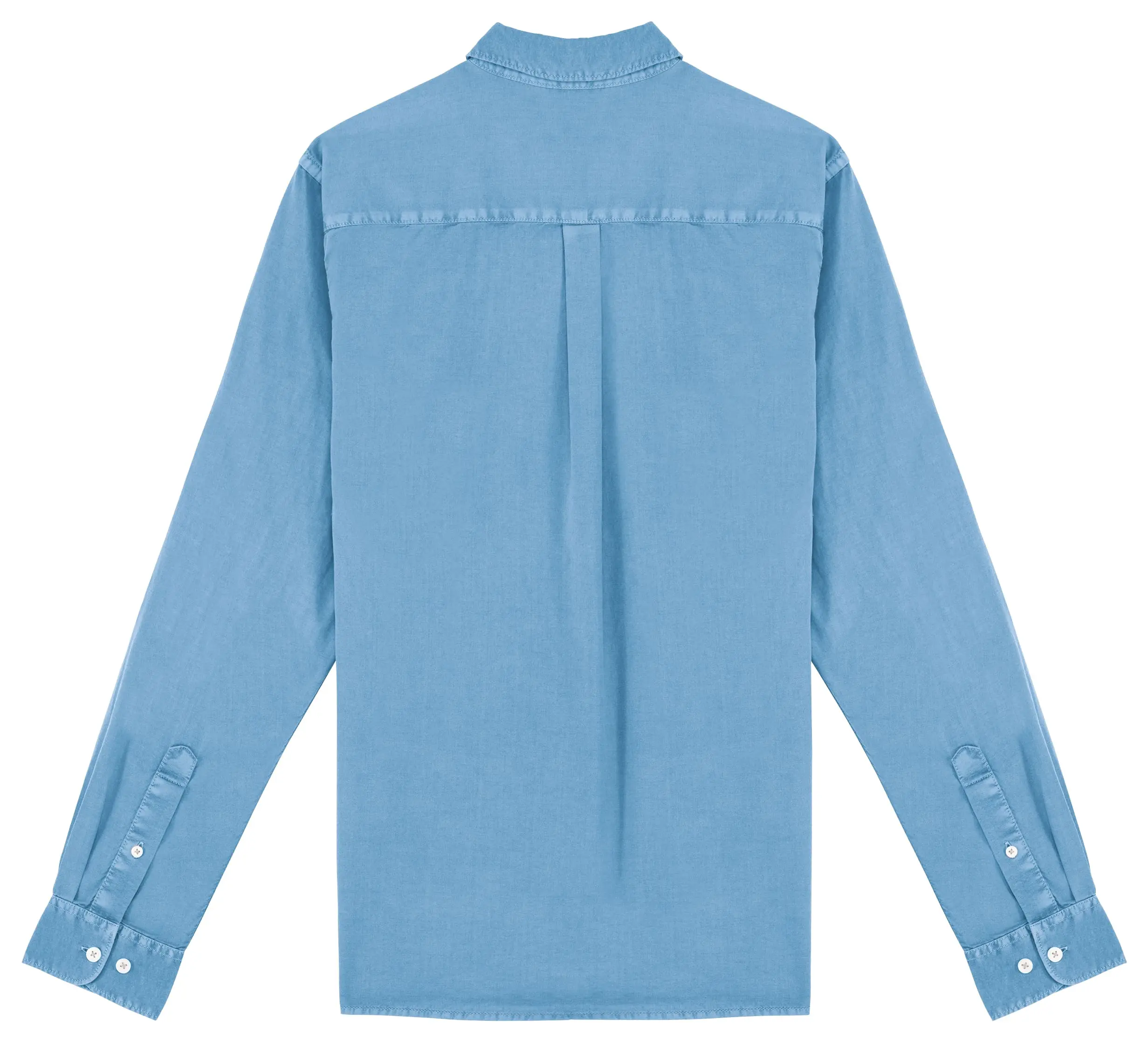 100 % biologisch katoen. Gekamd katoen. Fitted pasvorm. Klassieke knooplijst met knopen met parelmoereffect. Inzetsel op de achterkant met casual ‘ronde plooi’. Mouwen afgewerkt met puntvormige mouwlijst met knoopjes. Kleding geverfd na confectie: de kleuren kunnen per stuk licht verschillen. Dit product kan afgeven als het in contact komt met andere oppervlakken of kleding.