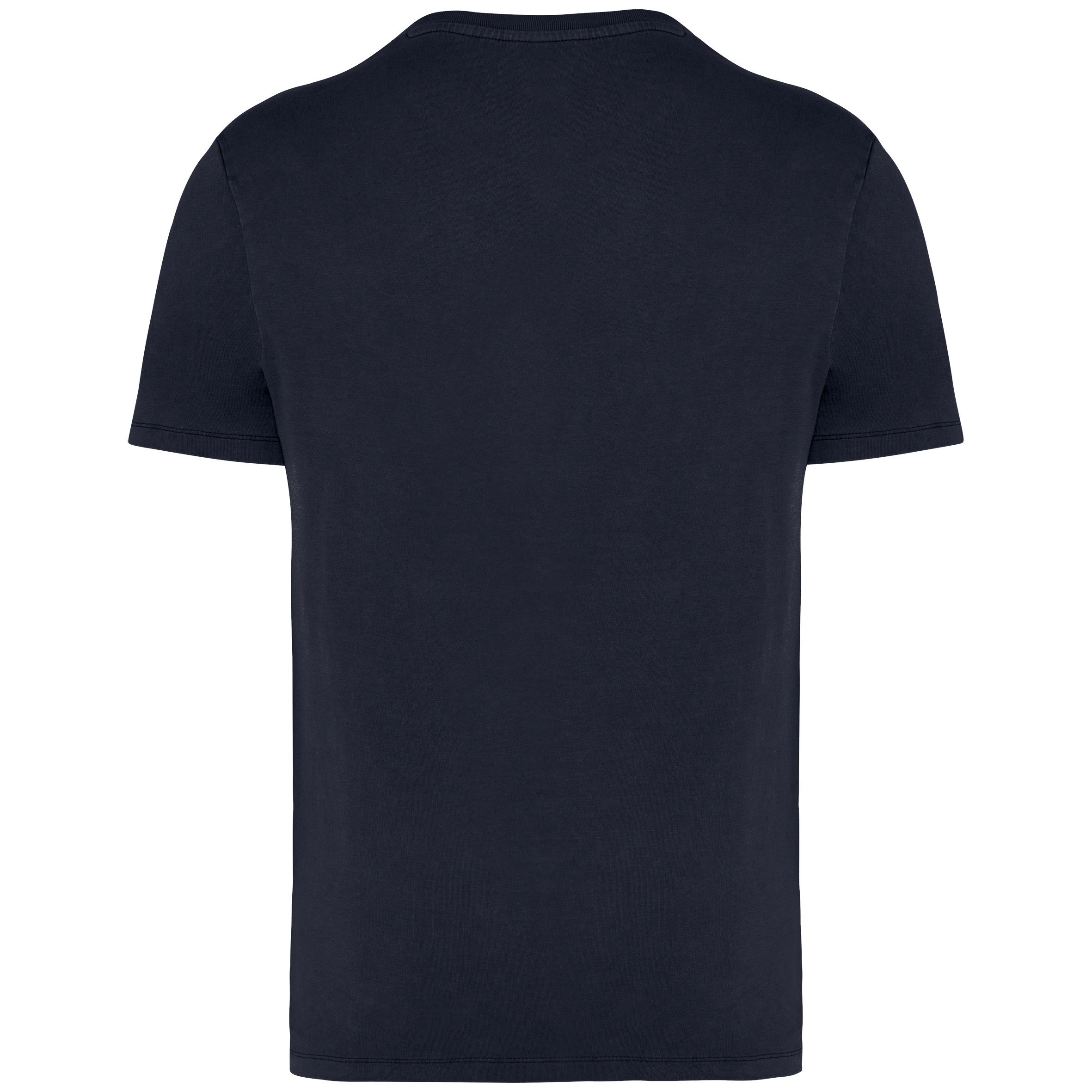100 % biologisch katoen. Gekamd en ringgesponnen katoen. Fitted pasvorm. Zijnaden. Enzymgewassen. 1 x 1 ribboord. Toon op toon nektape in jersey aan de binnenkant van de kraag. Halsopening met enkel stiksel. Zoom met dubbel stiksel aan de mouwuiteinden en de onderkant. Kleding geverfd na confectie: de kleuren kunnen per stuk licht verschillen. Dit product kan afgeven als het in contact komt met lichtgekleurde oppervlakken of kleding.