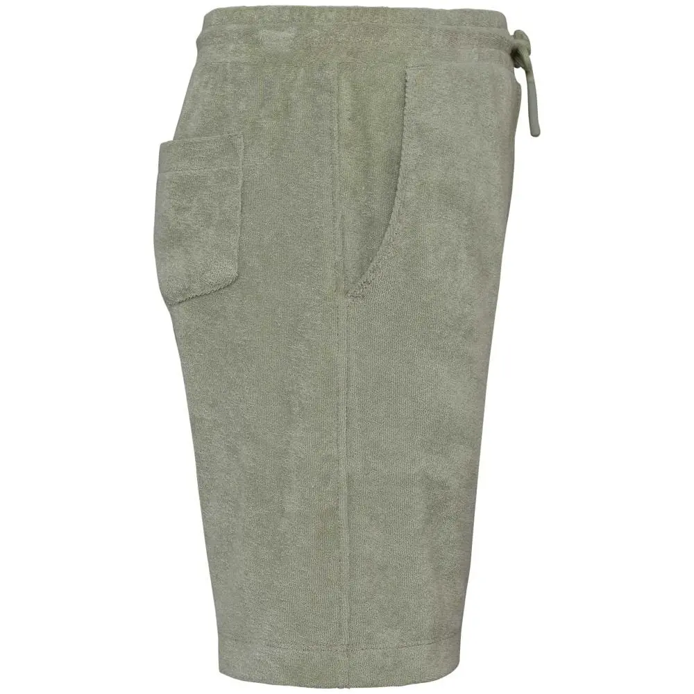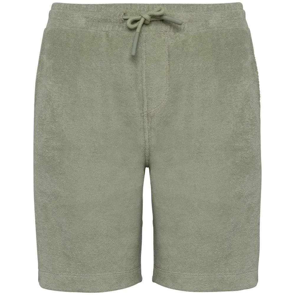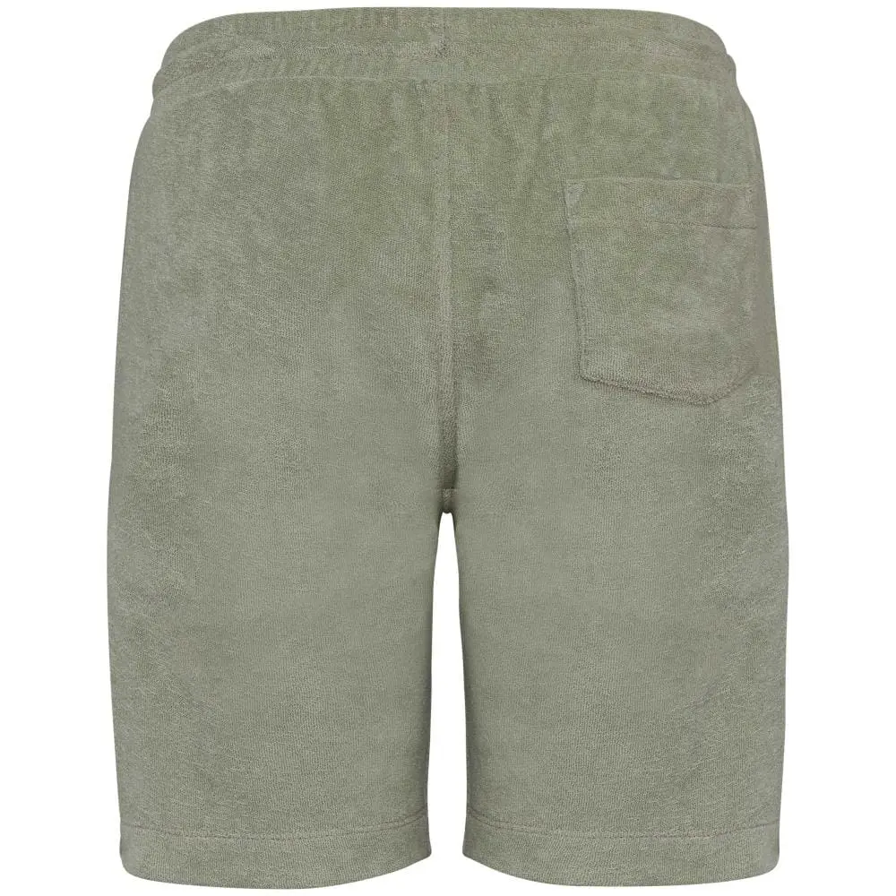Gemaakt in Portugal. 80 % biokatoen en 20 % post-consumer gerecycled polyester. Gekamd katoen. In spons. Enzymwas. Elastische tailleband in de hoofdstof. Aanrijgkoordjes op de taille met ton-sur-ton silicone uiteinde. Valse fantasiegulp. Twee zijzakken vooraan met dubbel stiksel in de opening. Opgezette zak op de achterkant rechts. Zoom met dubbel stiksel onderaan.