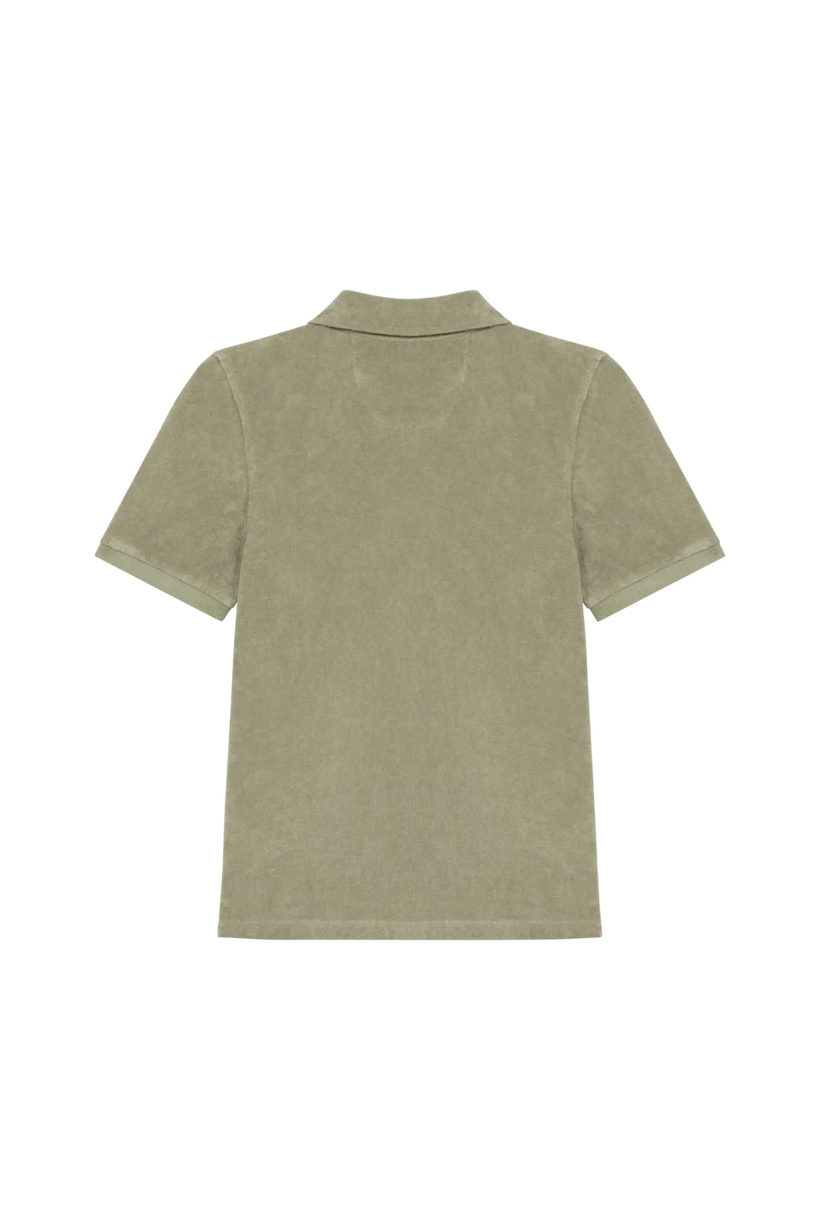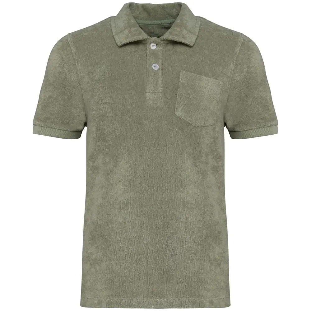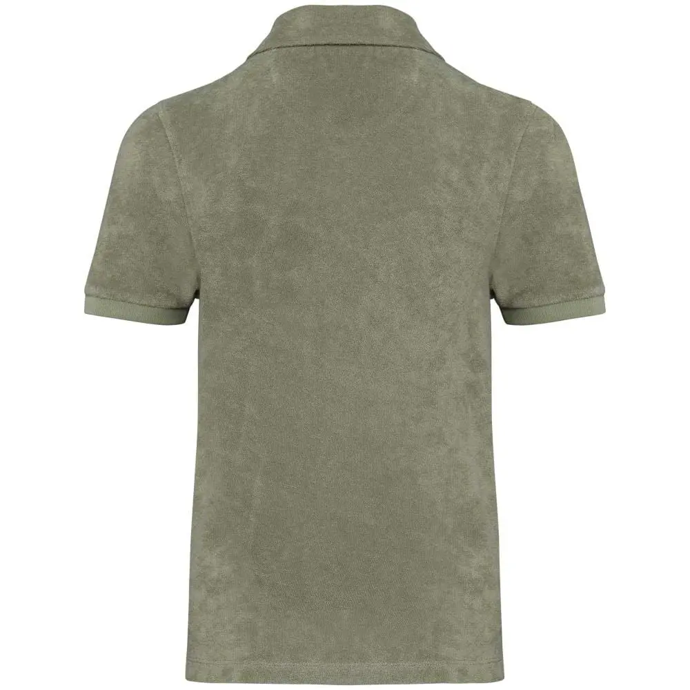 Gemaakt in Portugal. 80 % biokatoen en 20 % post-consumer gerecycled polyester. Gekamd katoen. In spons. Fitted pasvorm. Zijnaden. Enzymwas. Opgezet borstzakje. Halvemaan op de achterkant. Kraag in de hoofdstof. Korte mouwen met 1×1 ribboord aan de mouwuiteinden en stiksel aan de armsgaten. Knooplijst met 2 knoopjes in wit plastic met parelmoeren effect. Schouderversteviging in de hoofdstof. Zoom met dubbel stiksel onderaan. Zijsplitten en halsopening met nektape met ton-sur-ton visgraatmotief.