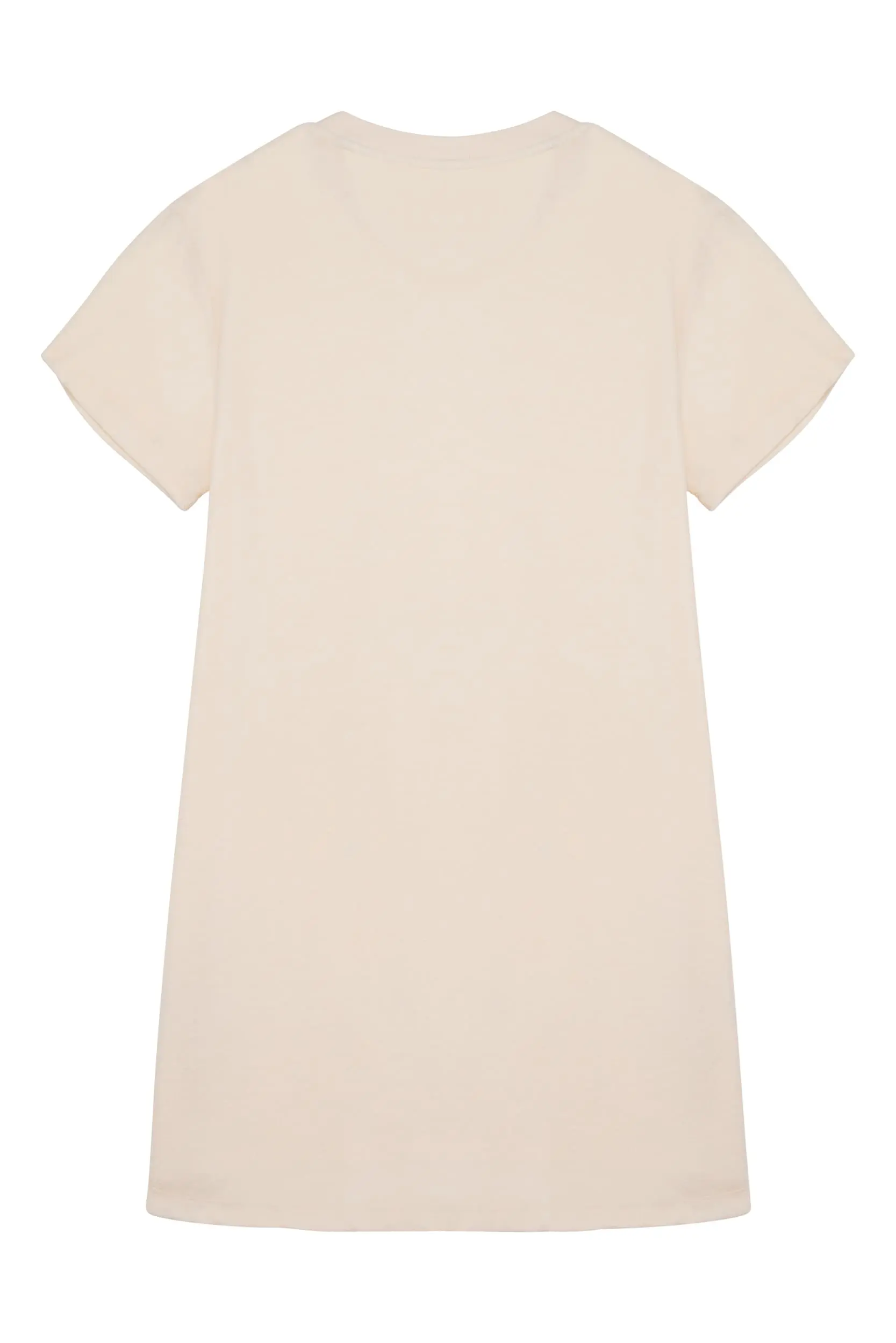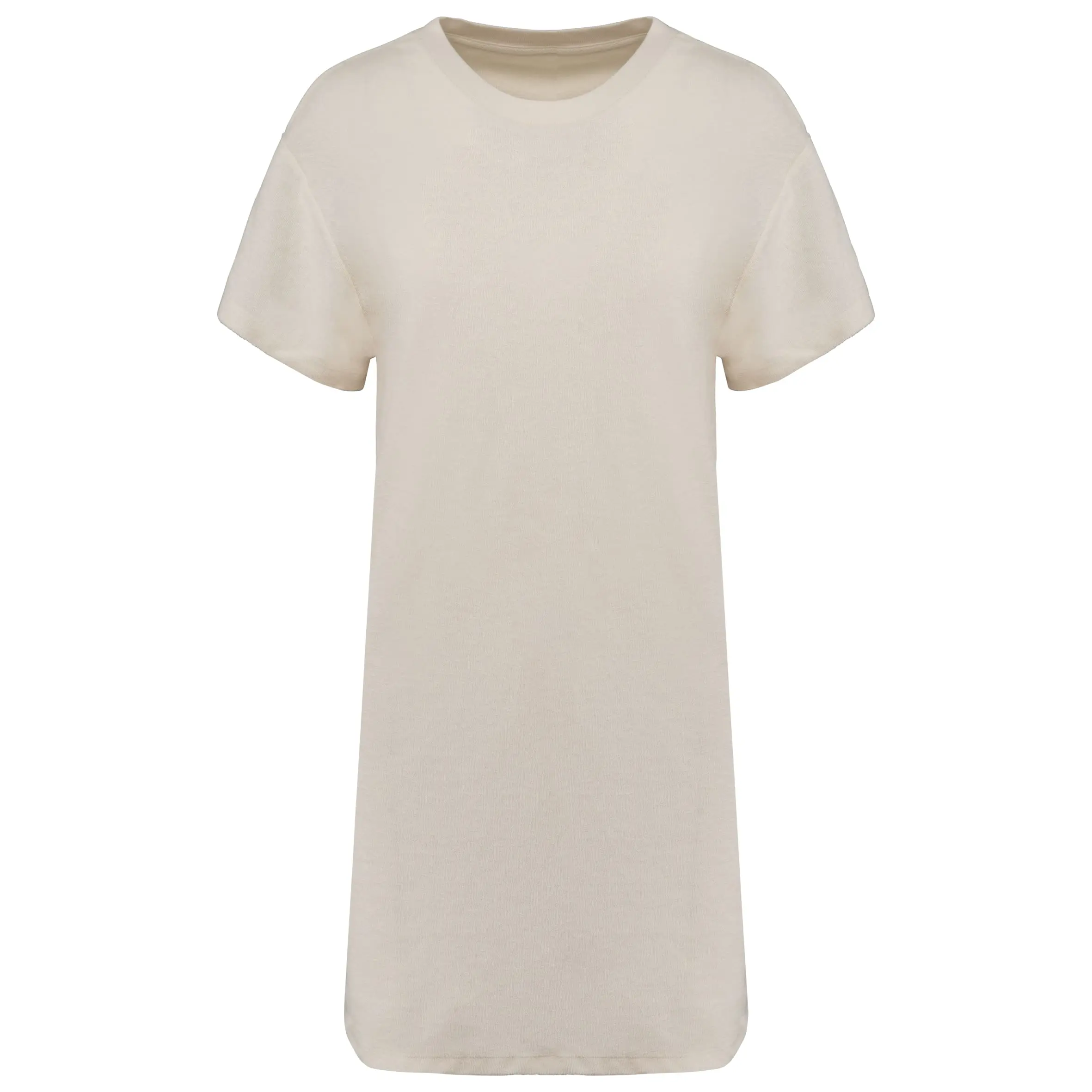 Ecologische badstof t-shirtjurk met afhangende mouwen