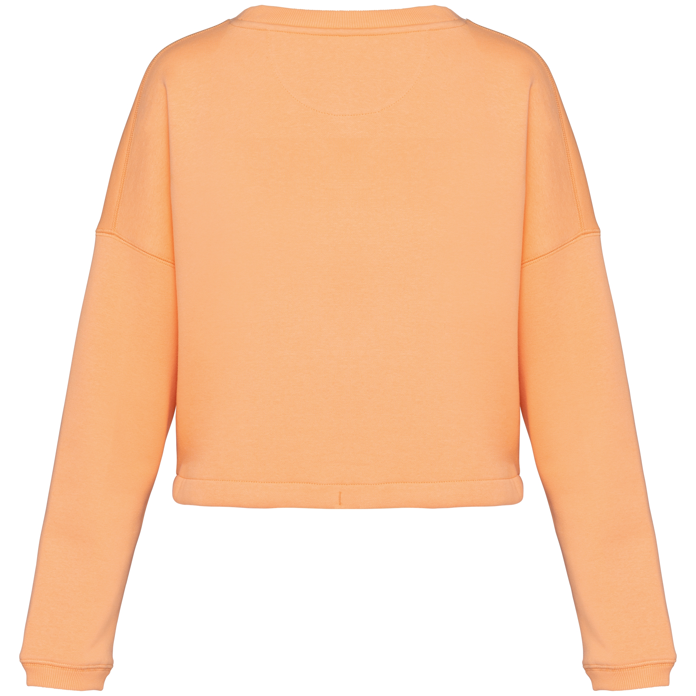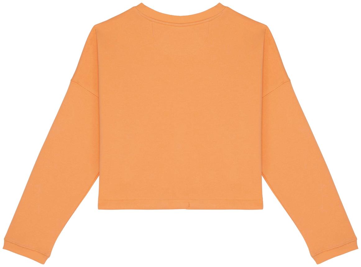 65 % biokatoen / 35 % post-consumer gerecycled polyester. Gekamd katoen. Oversized snit met afhangende schouders. Aan de binnenkant geborsteld fleece van 3 LSF-garens (Low Shrinkage Fleece: voorgekrompen fleece). Halvemaan op de achterkant. Enzymwas. Platte aanrijgkoordjes van biokatoen aan de onderkant met koorduiteinden van gerecycled metaal. Overlocksteek aan de halsopening, aan de schoudernaden, aan de armsgaten en aan de mouwuiteinden 2 x 1 ribboord in de kraag en de mouwuiteinden. Halsopening met nektape met kepermotief aan de binnenkant.