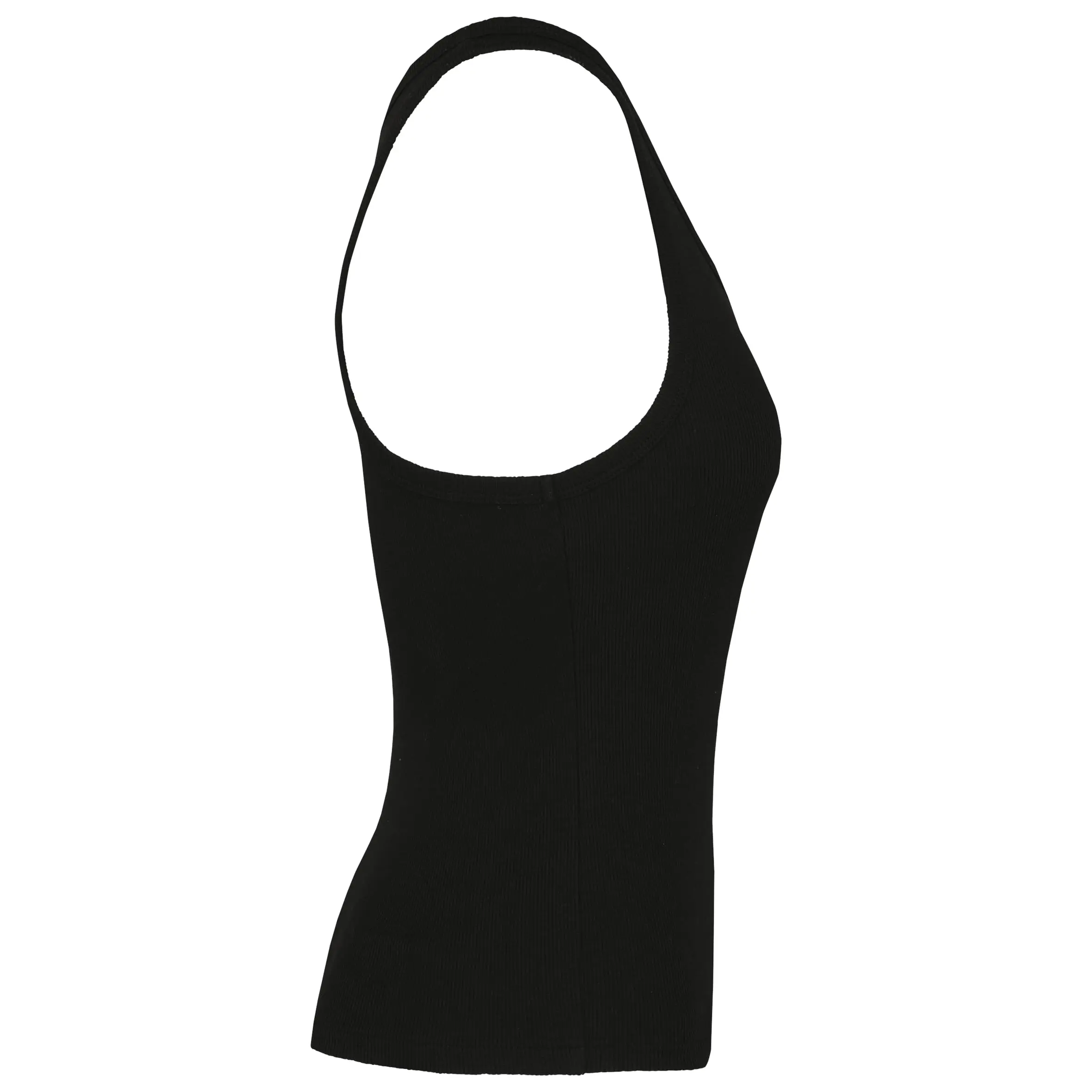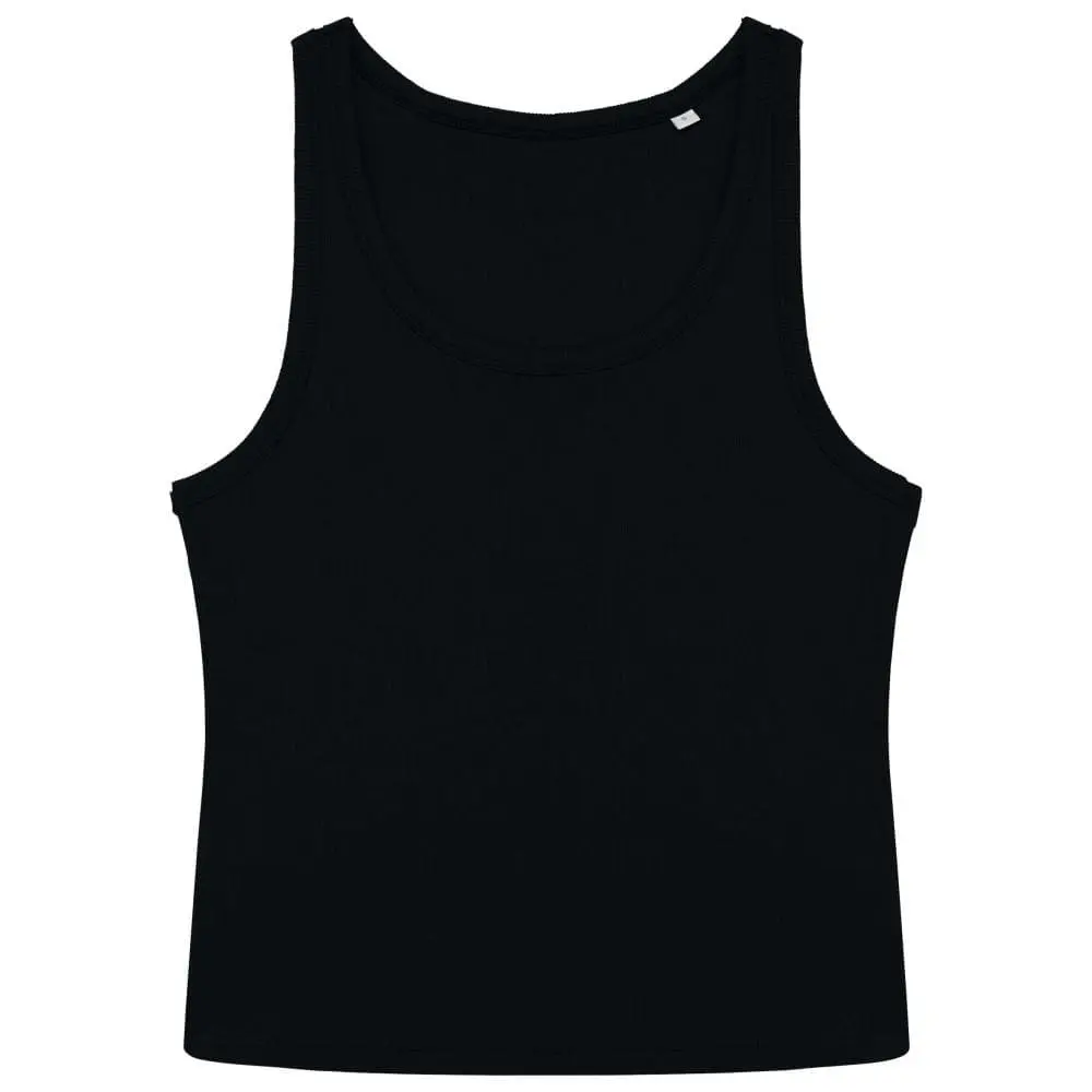 98 % biokatoen / 2 % gerecycled elastaan. Gekamd katoen. Slim snit. Enzymgewassen. Stretch stof. Tanktop in 2 x 1 ribboord. Halslijn en armsgat in hoofdmateriaal met dubbelgestikte afwerking. Zoom met enkel stiksel onderaan. Certificering in uitvoering.