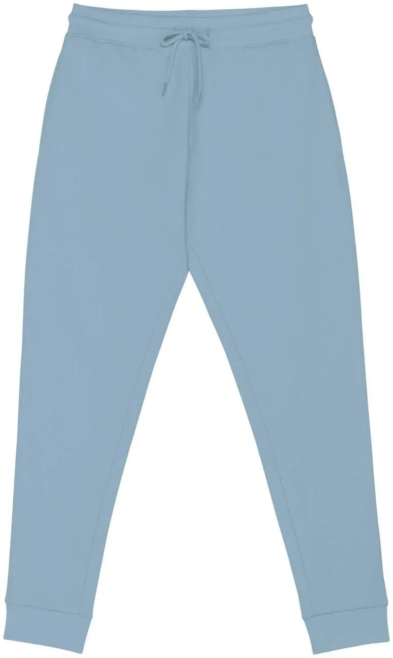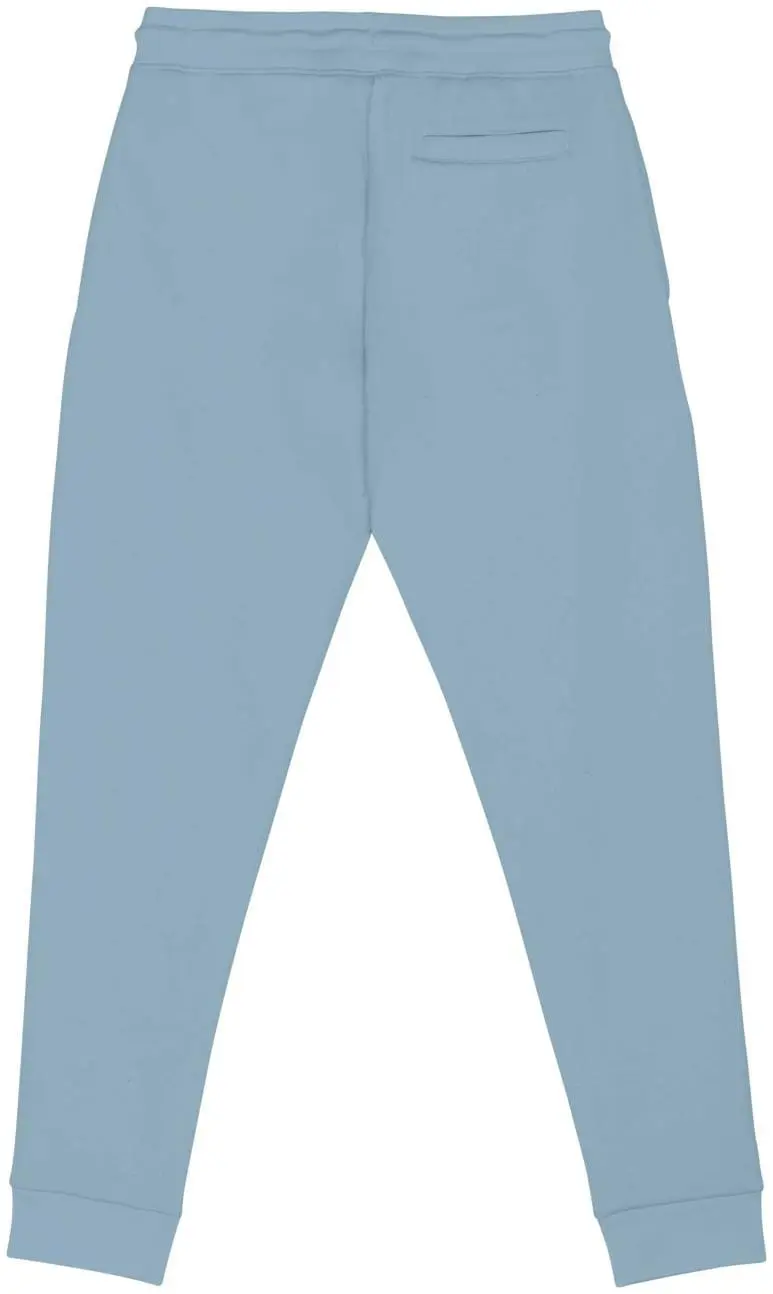 85 % biologisch katoen / 15 % post-consumer gerecycled polyester. Gekamd en ringgesponnen katoen. Enzymgewassen. Geborsteld fleece 3 draden LSF (Low Shrinkage Fleece). Tailleband van 1 x 1 ribboord met aanrijgkoordje en knoopsgatoogje. Zijzakken en omzoomde achterzak. 1 x 1 ribboord onder aan de broekspijpen.