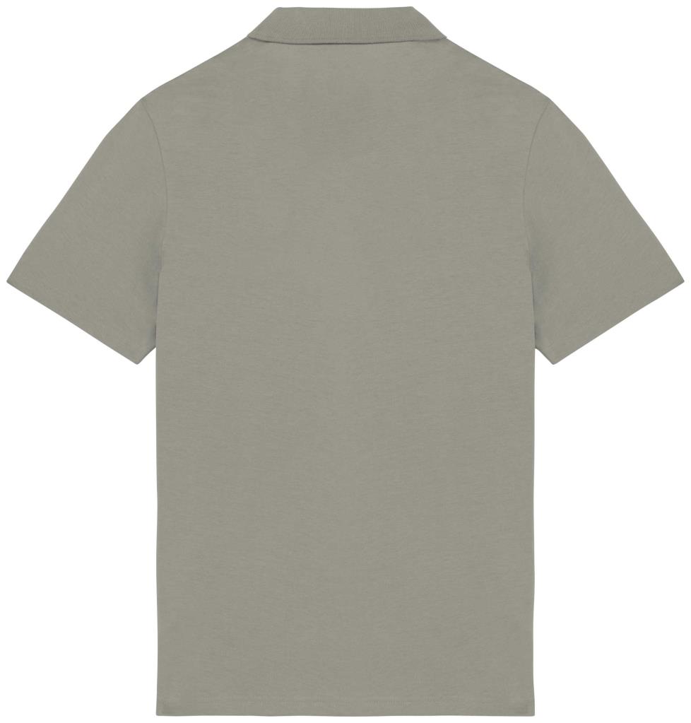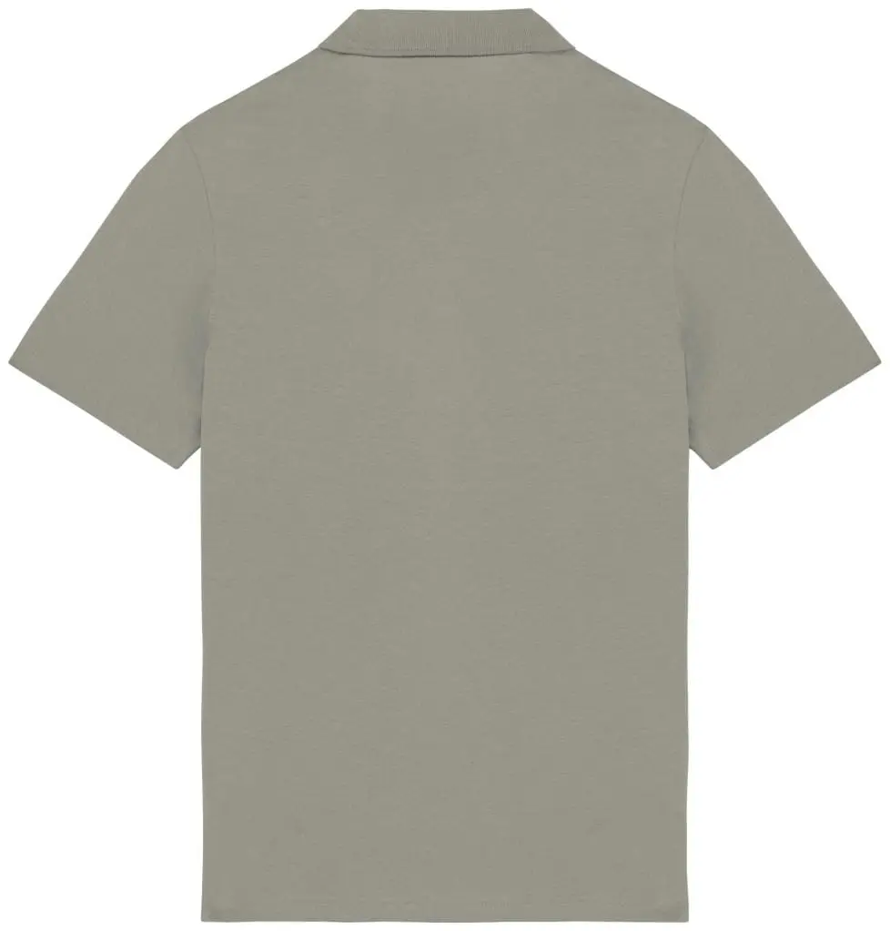 100 % biologisch katoen. Gekamd en ringgesponnen katoen. Jerseytricot. Fitted pasvorm. Enzymgewassen. Kraag in ribboord. Knooplijst met 3 knopen afgewerkt met stiksel. Toon op toon Knoopjes in gerecycleerd plastic met parelmoerlook. toon op toon nektape om de binnenkant van de kraag af te werken. Zijsplitten met aan de binnenkant toon op toon nektape in de hoofdstof. Dubbel stiksel aan de mouwboorden en de zoom.