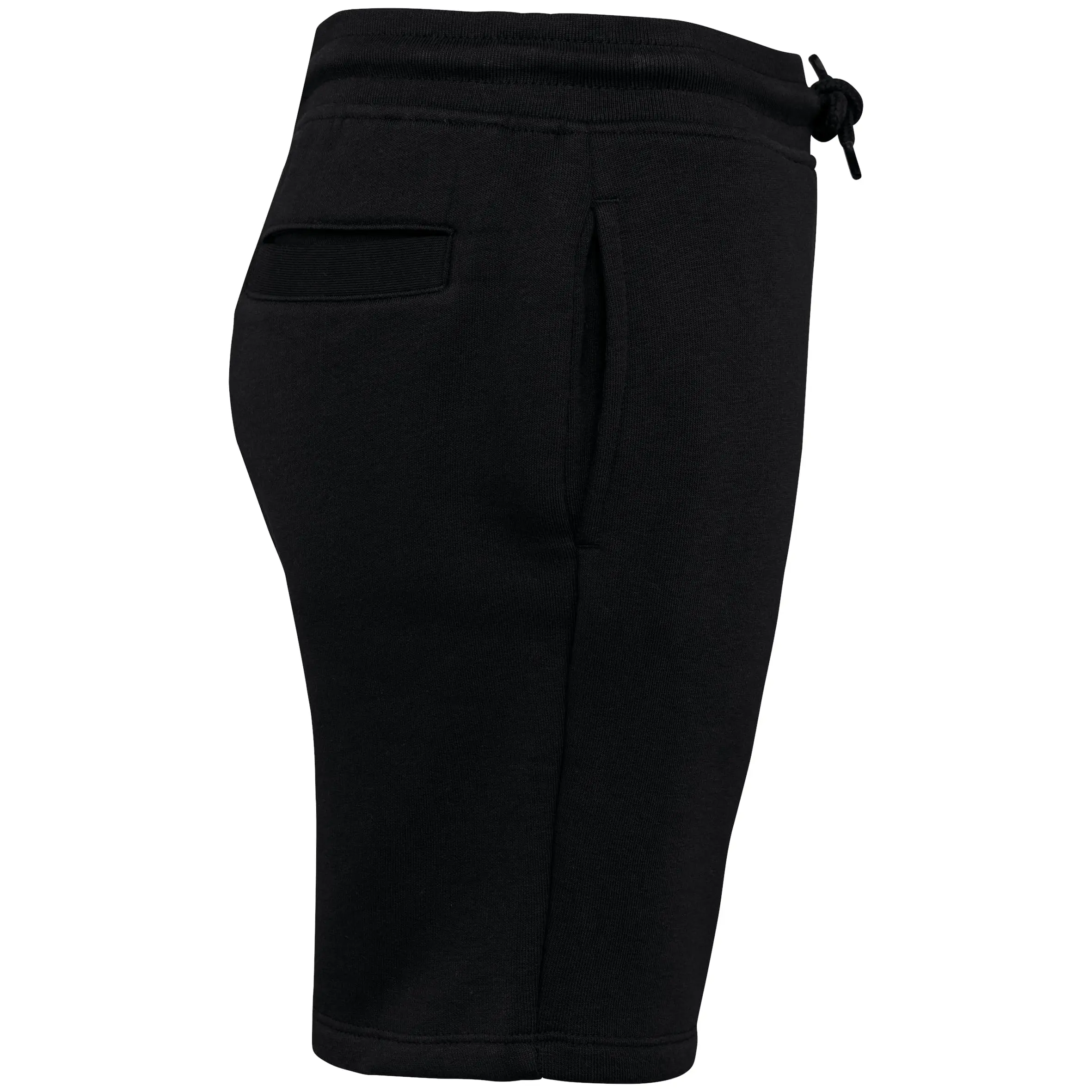 85 % biokatoen / 15 % post-consumer gerecycled polyester. Gekamd katoen. Geborsteld fleece met 3 LSF-garens (Low Shrinkage Fleece: voorgekrompen fleece). Enzymwas. Elastische tailleband met 1 x 1 ribboord en ronde aanrijgkoordjes van biokatoen. Knoopsgatoogje voor taillebandkoordje. Zijzakken en een omzoomde achterzak. Dubbel gestikte zoom onderaan de broekspijpen.